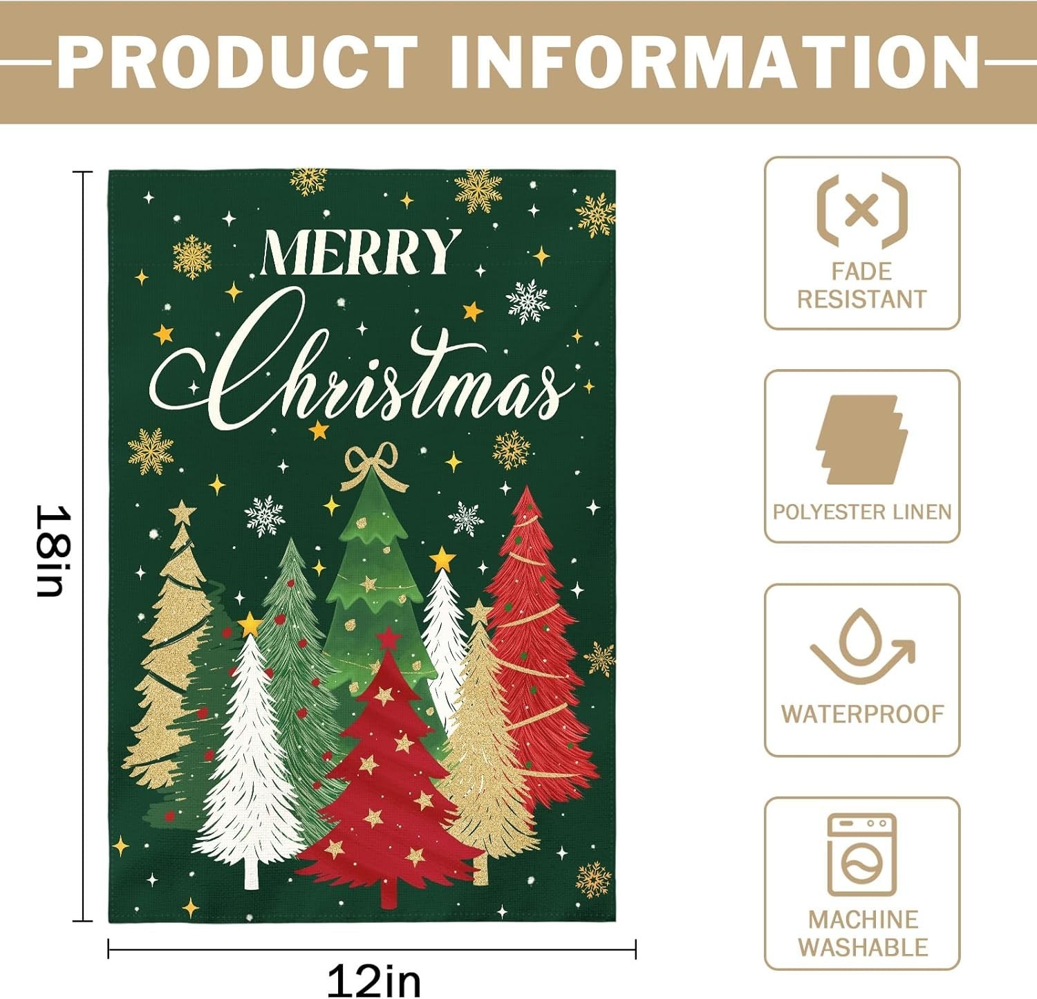 Merry Christmas Garden Flag 12x18 Inch Xmas Tree Snowflake Print Forest Green Ya