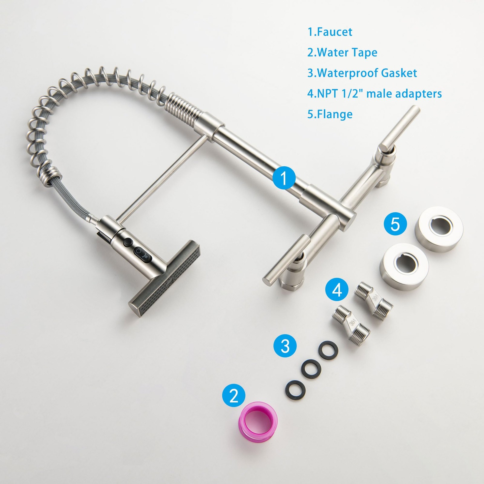 как выглядит Wall Mount Kitchen Faucet, 8 Inch Center Wall Mount Faucets with 3-Function P... фото