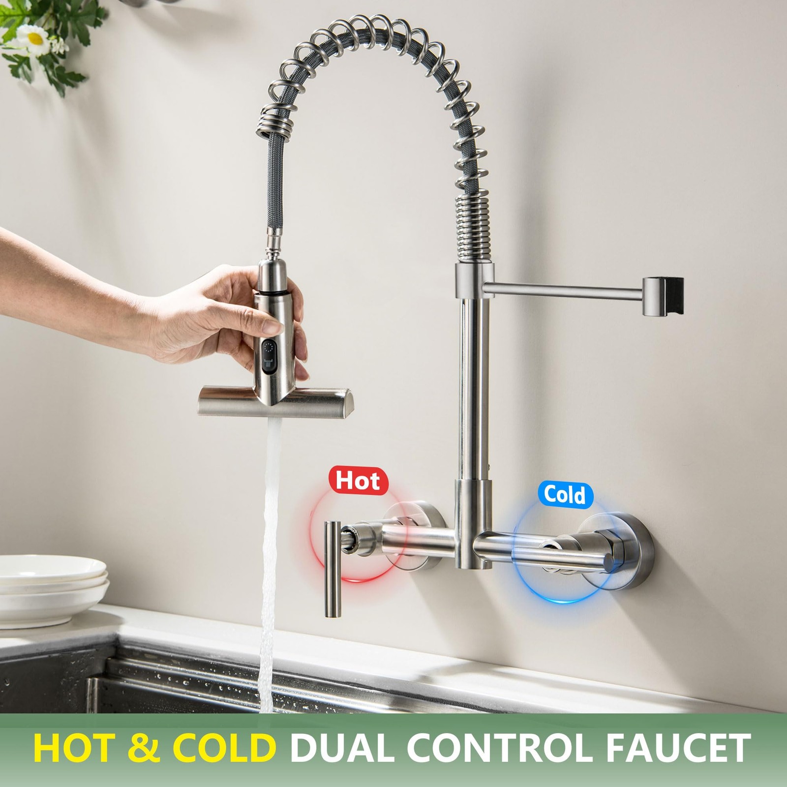 Wall Mount Kitchen Faucet, 8 Inch Center Wall Mount Faucets with 3-Function P...