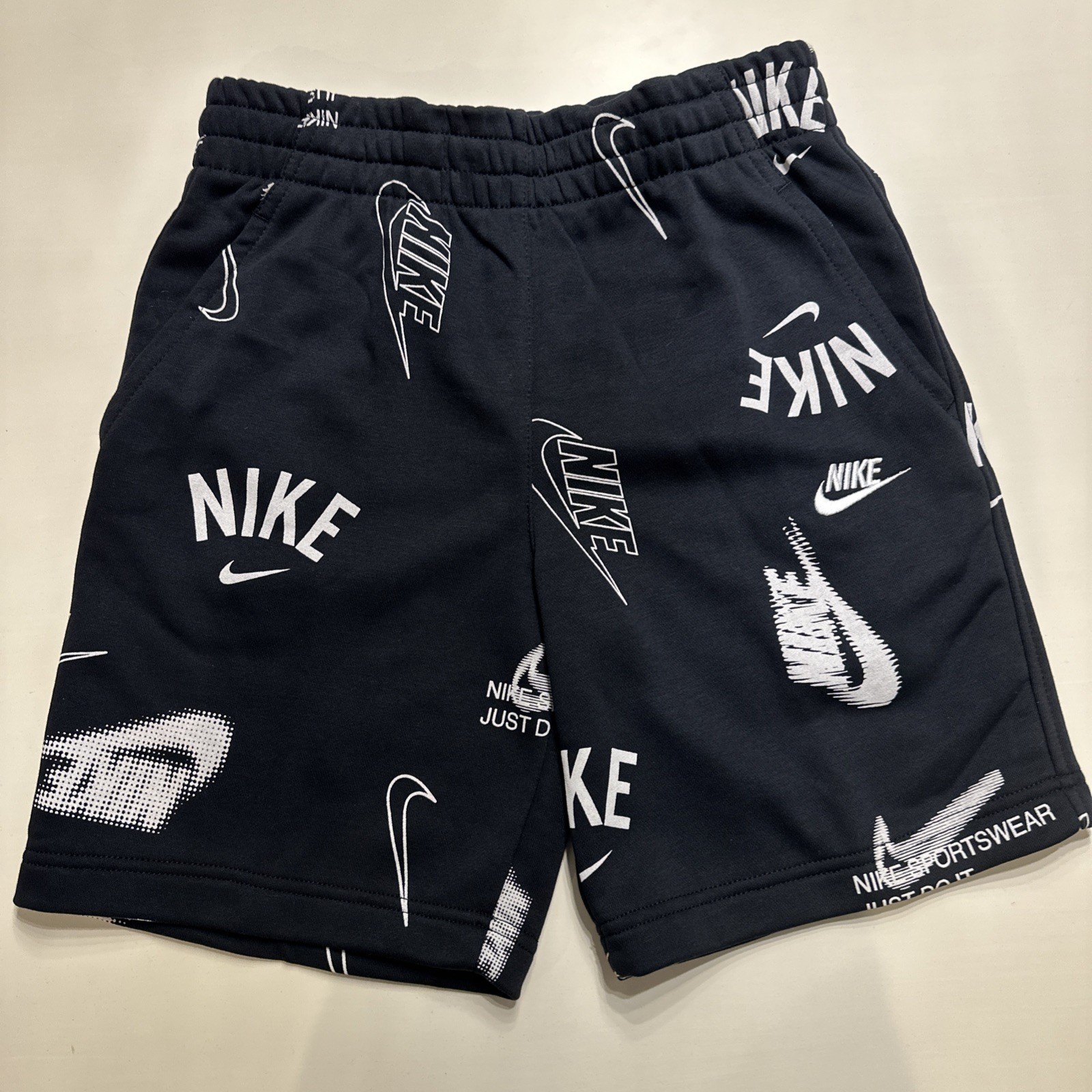 NWT 75 Nike Kids Short Set 2 Piece Short Sleeve Logo Shorts Kids Sz L -Black