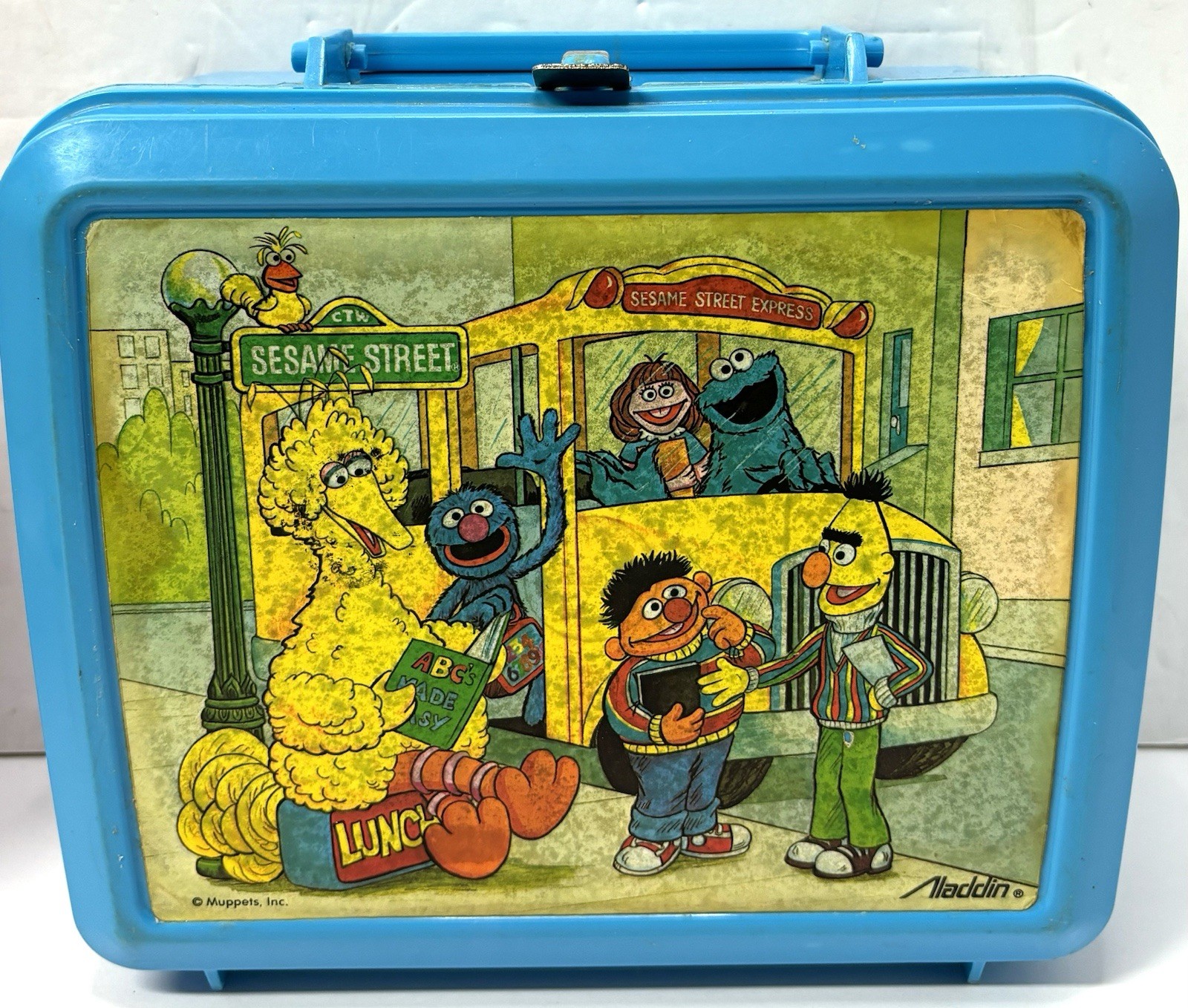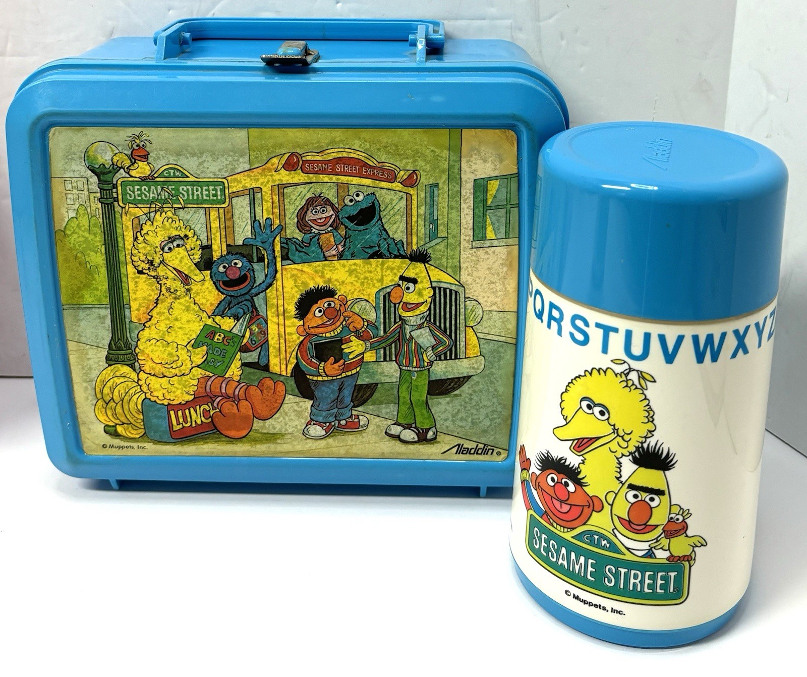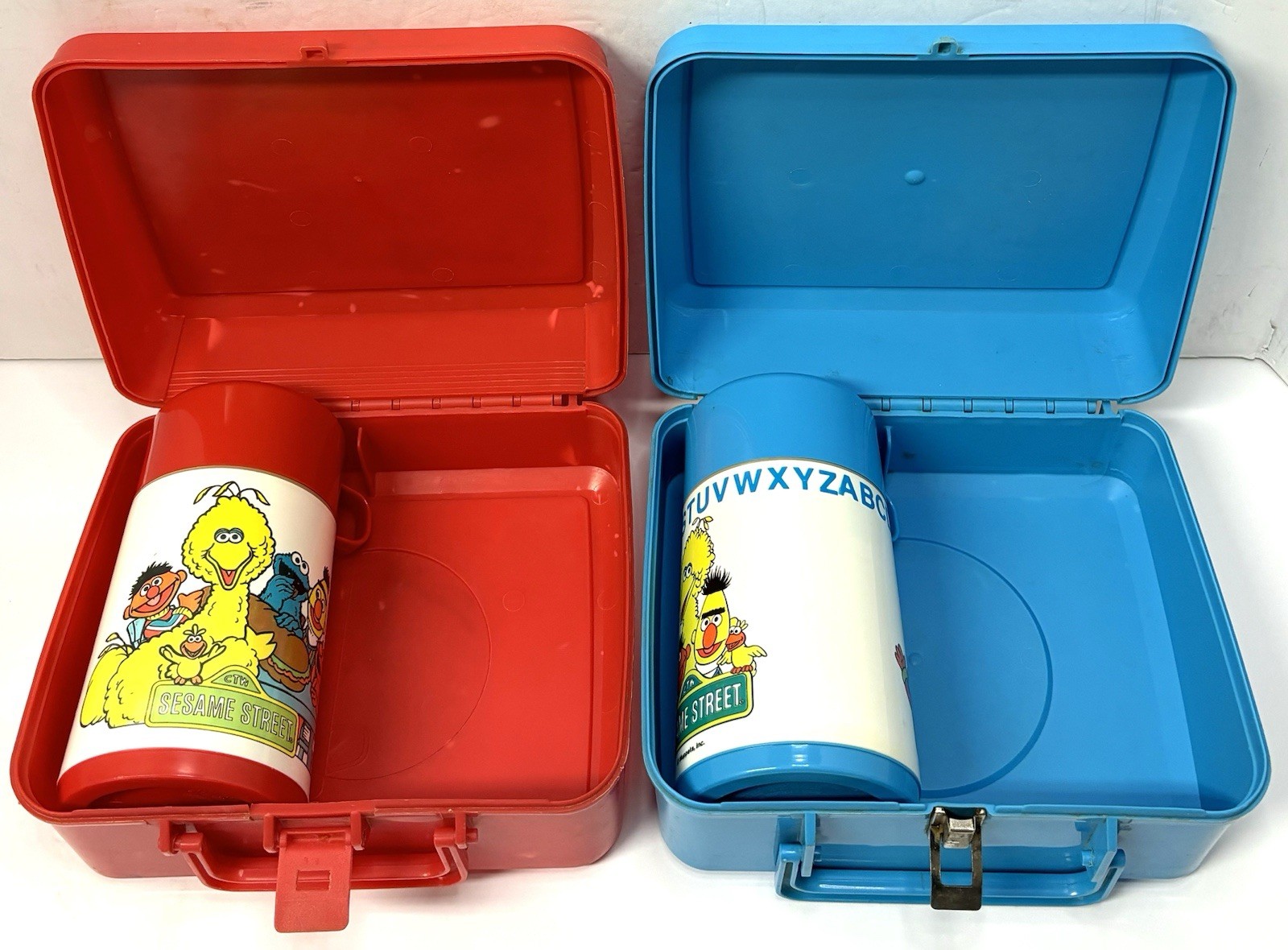 • Vintage Sesame Street Aladdin Plastic Lunchboxes w/ Thermos Set of 2