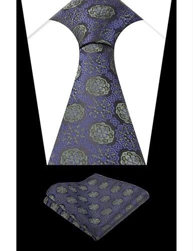 Mens Vintage Solid Plaid Tie with Pocket Square 3.15inches 149-navy Blue sage
