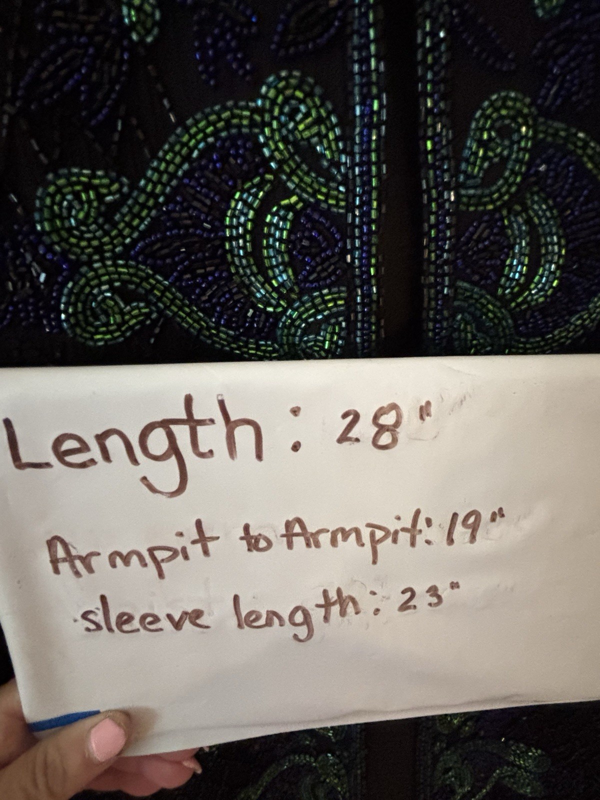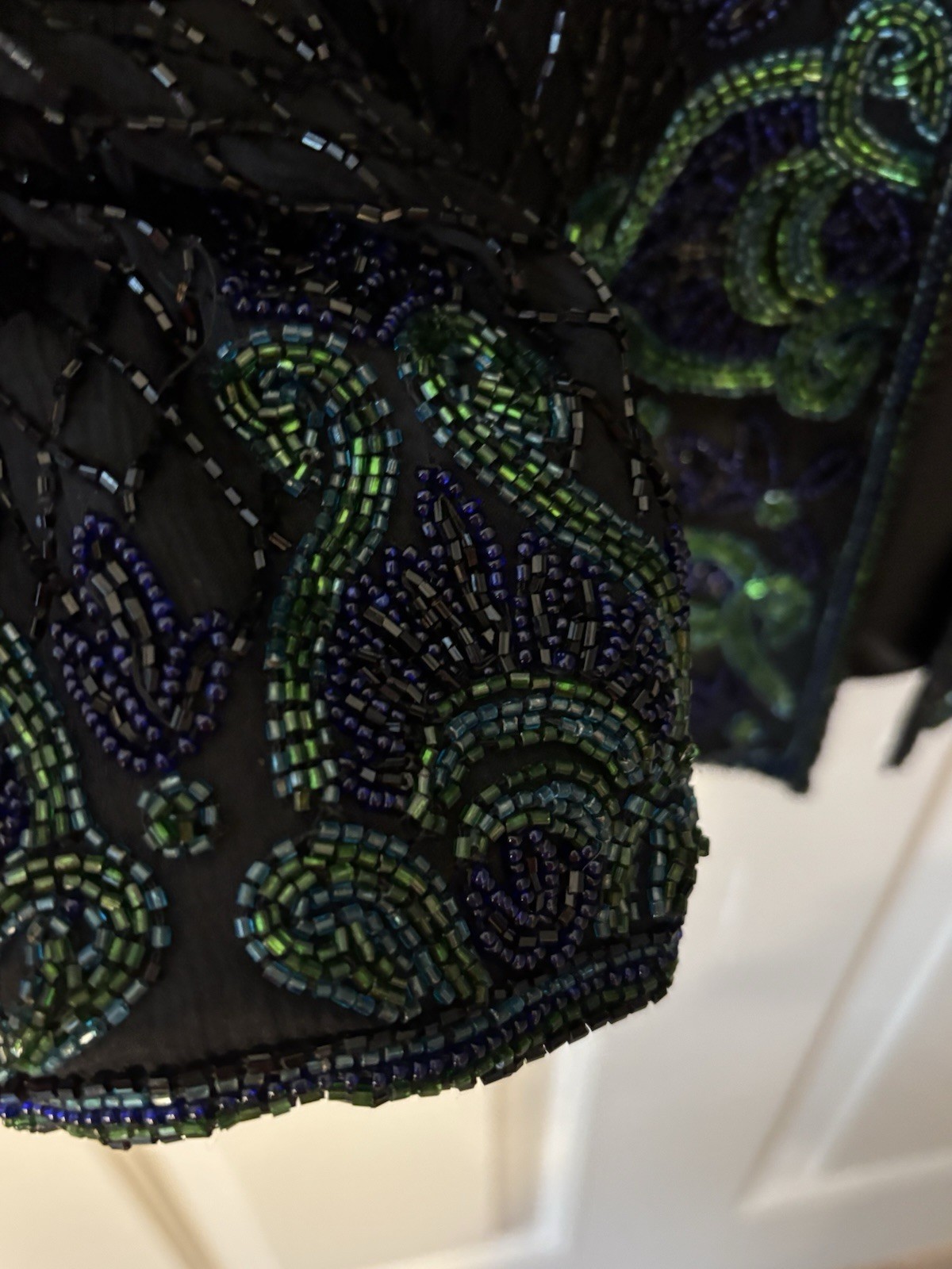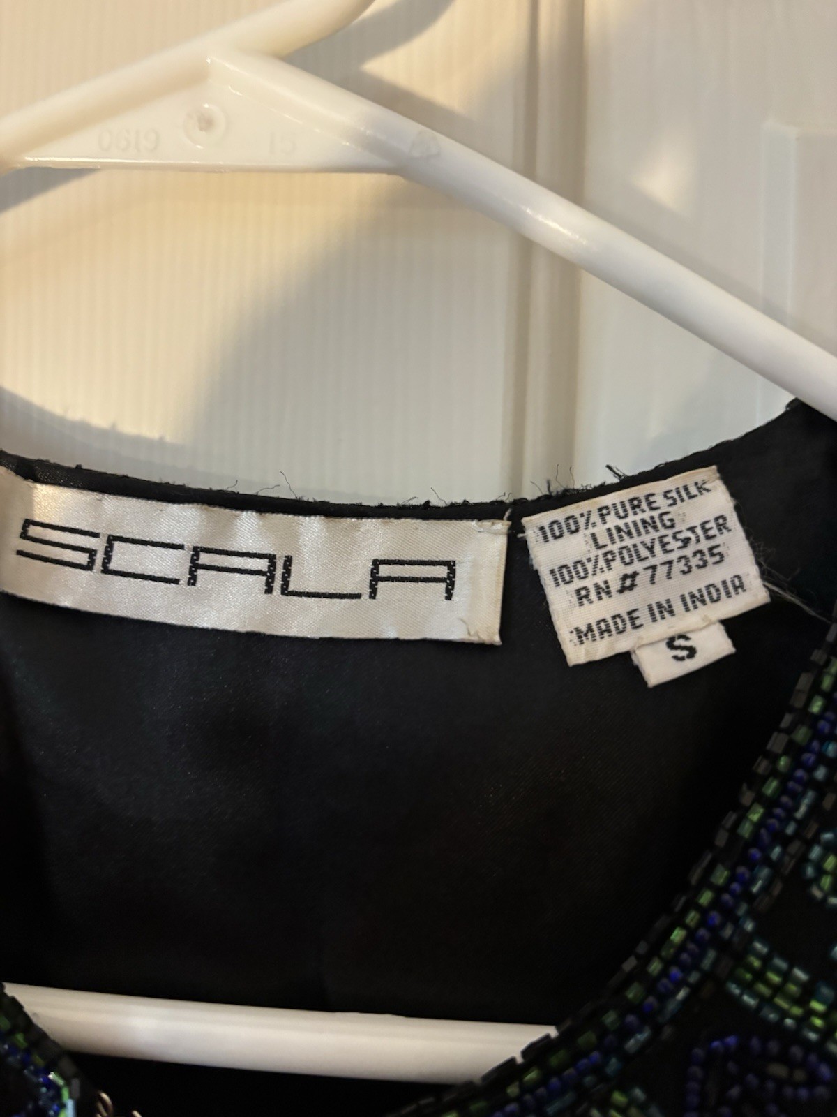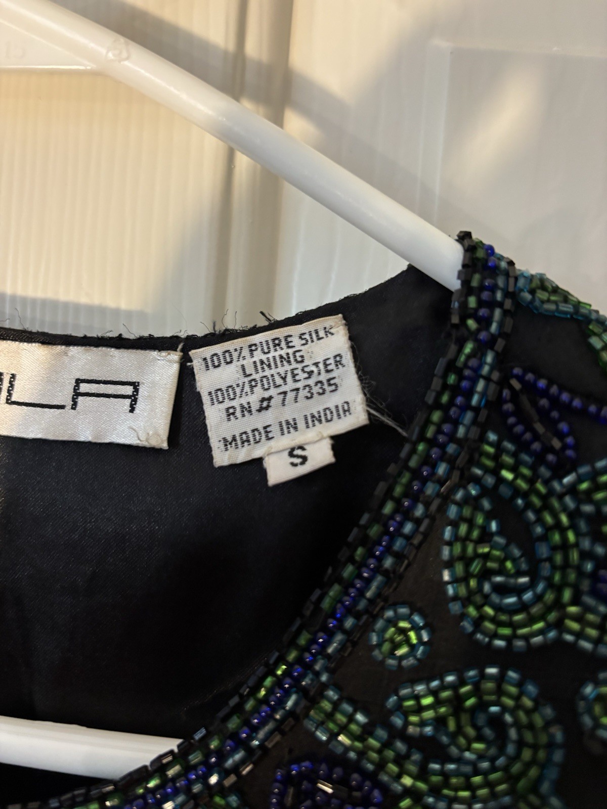как выглядит Scala Long Silk Jacket Beaded Sequins Emerald Black Vintage Small фото