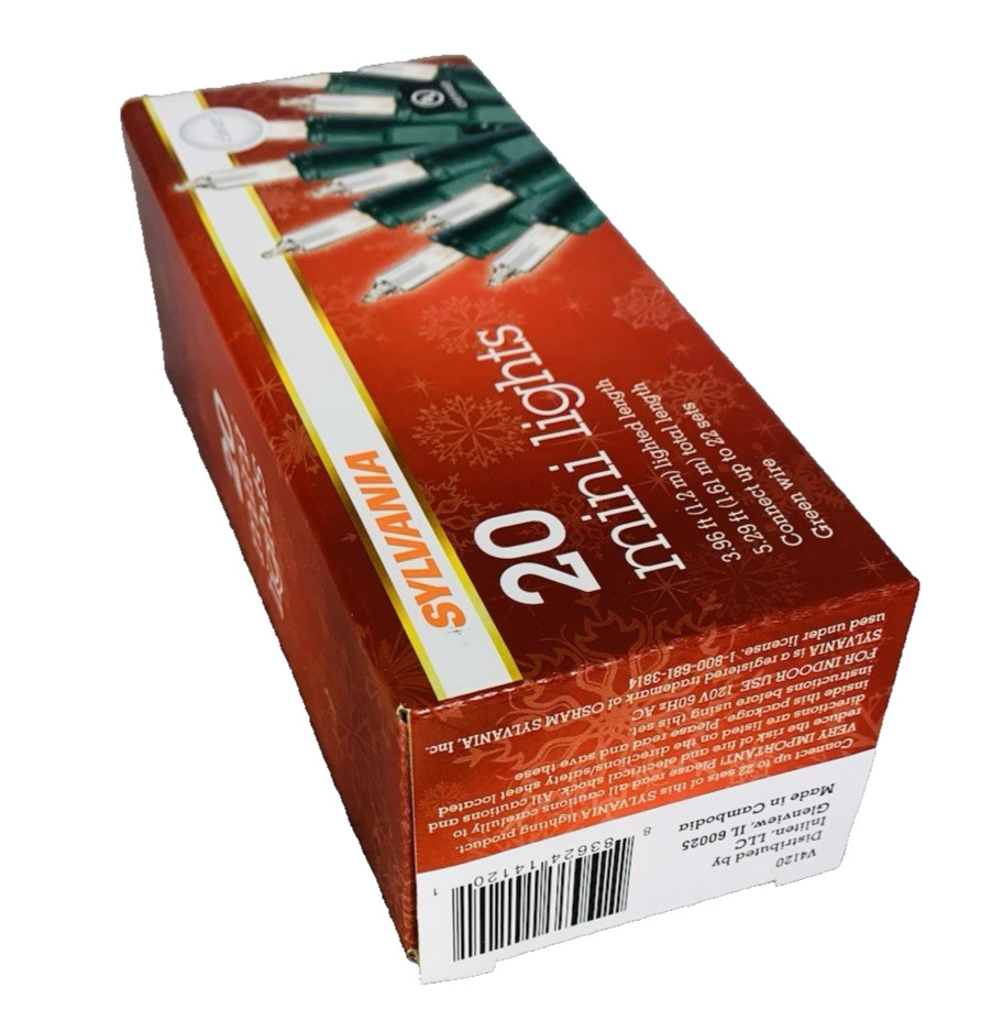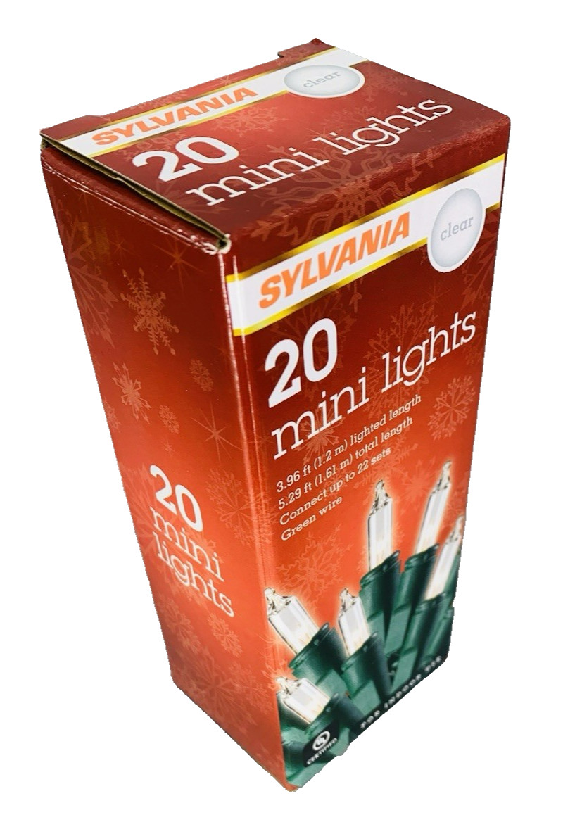 Clear Mini Lights String 20 Count Green Wire Christmas Incandescent 4' Sylvania