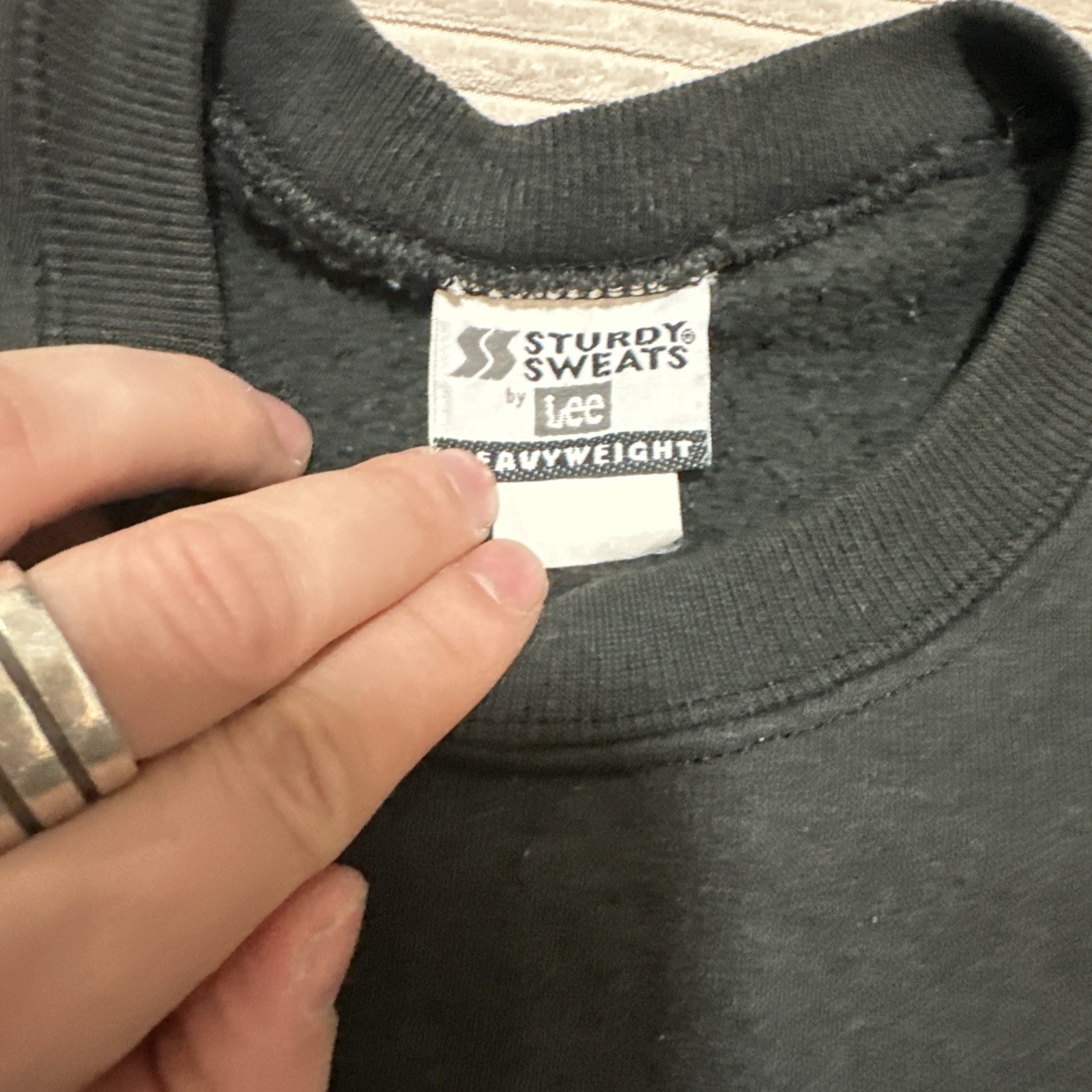 как выглядит Lee Mens Sturdy Sweats Crewneck Sweatshirt Black, Small, Vintage, Made in USA фото