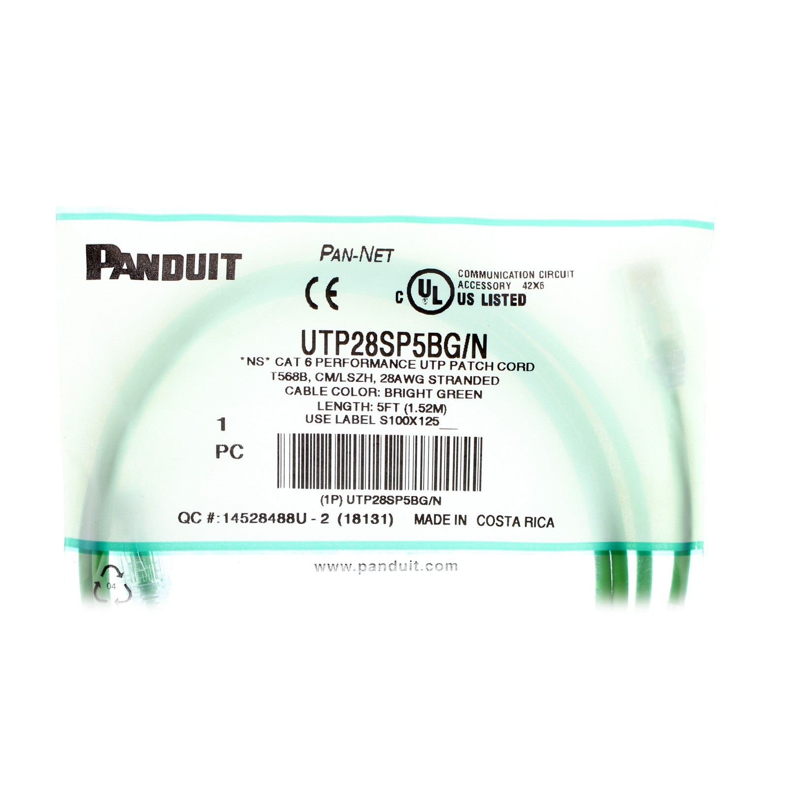 PANDUIT UTP28SP5BG/N CAT6 PERFORMANCE UTP PATCH CORD, 5-FEET, BRIGHT GREEN