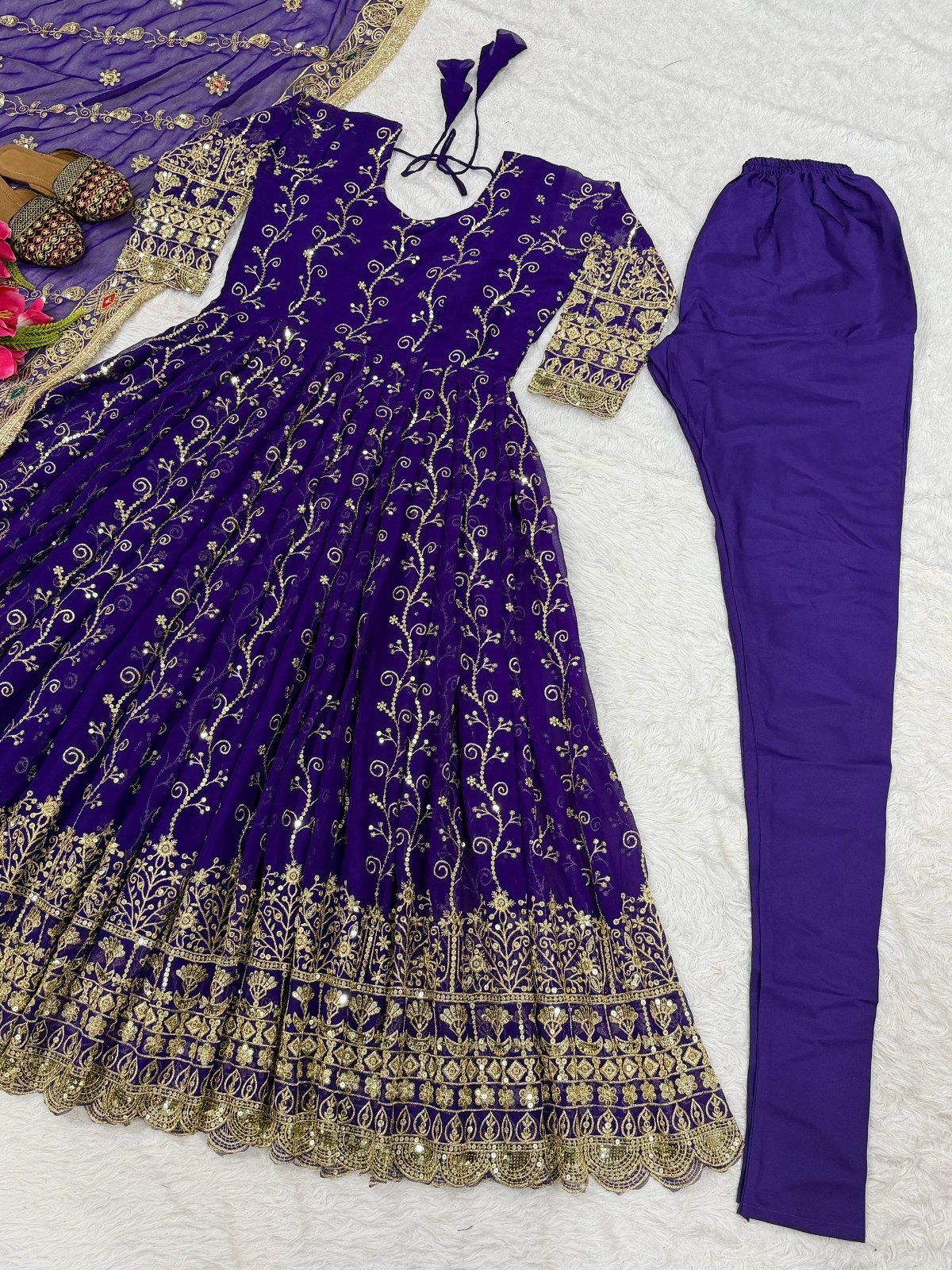как выглядит Classic Designer Purple Faux Georgette Gown Bottom With Dupatta For Women фото