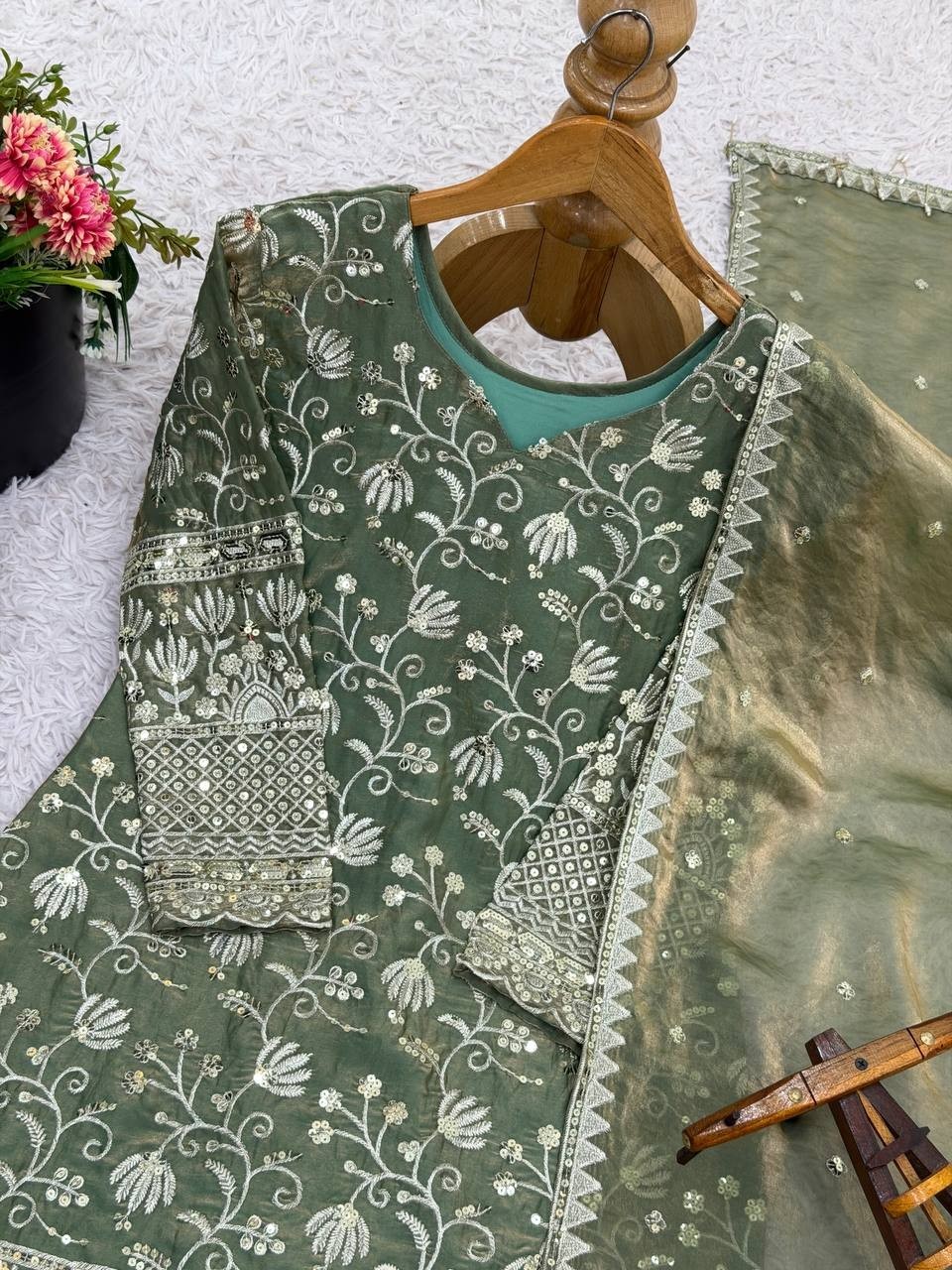 Designer Wedding Wear Silk Kurta Palazzo With Dupatta For Women Girls