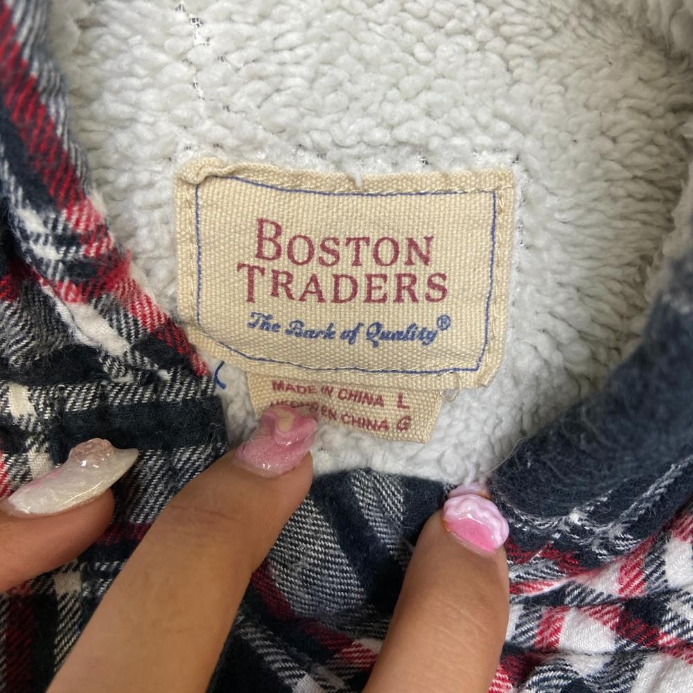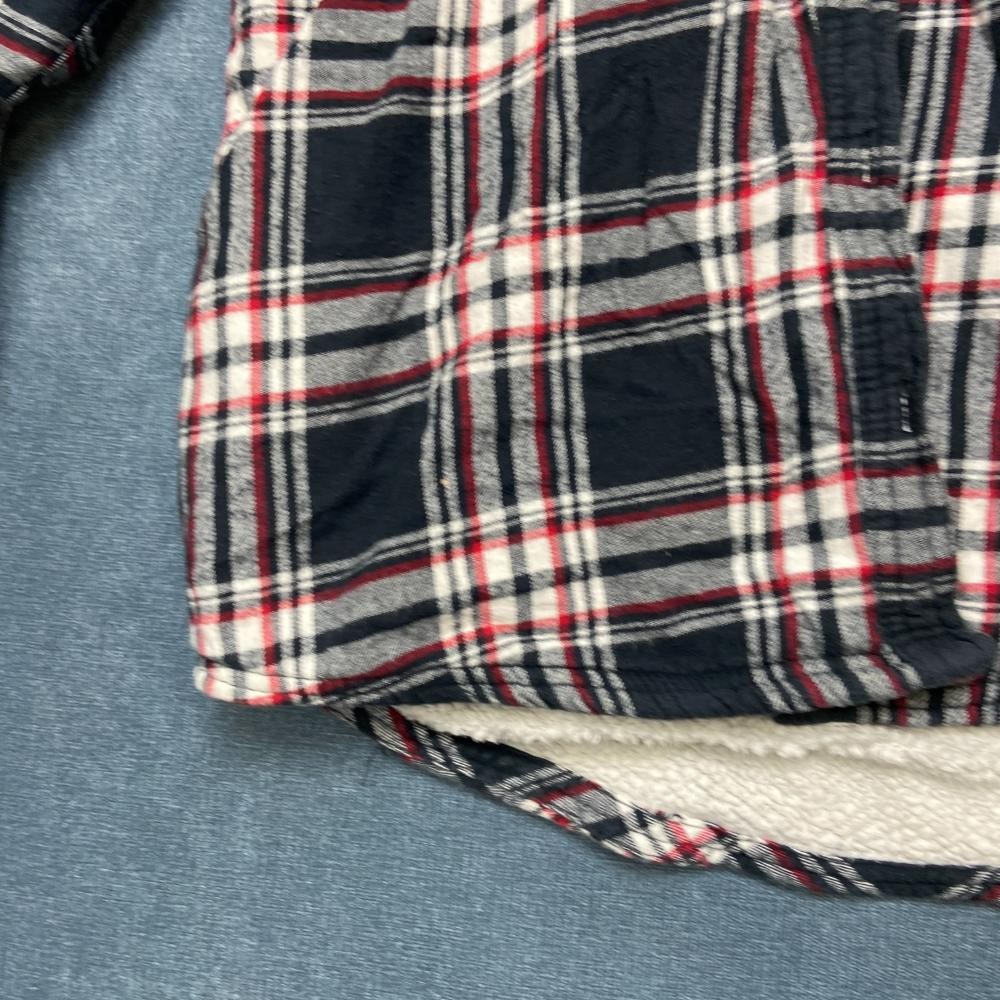 как выглядит Boston Traders Flannel Shirt Jacket Womens L Black Red Plaid Hooded Sherpa Lined фото