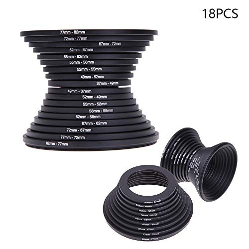 18Pcs Metal Step Up/Down Filter Ring Adapter Set 37-82mm for DSLR Cameras
