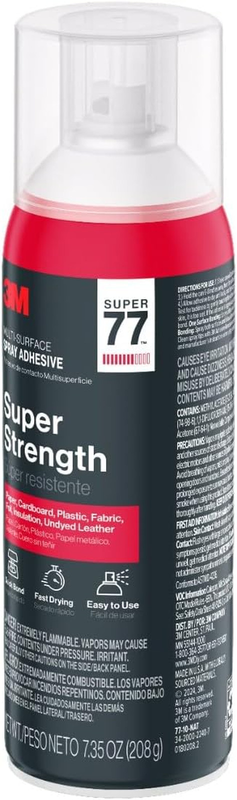 Super 77 Multi-Surface Spray Adhesive, 7.35 Oz., Low VOC, Quick Bond, Fast Dryin