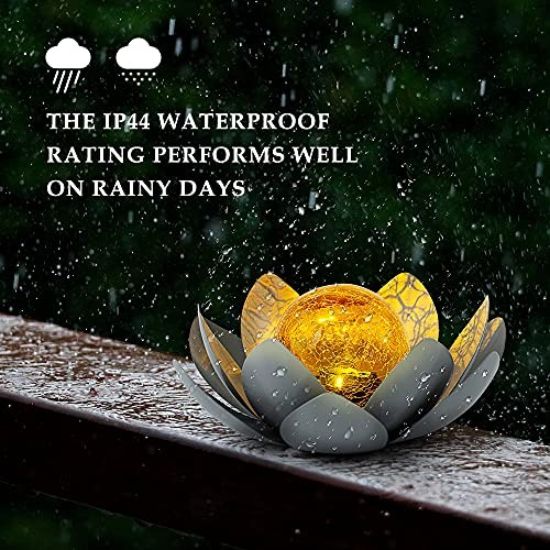 Solar Lights Outdoor Garden Decor , Amber Crackle Globe Glass Lotus Gray