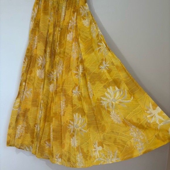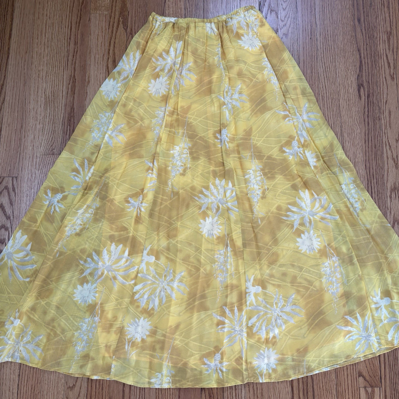 Carole Little Vintage 80s Yellow White Floral boho pleated pull on maxi skirt M