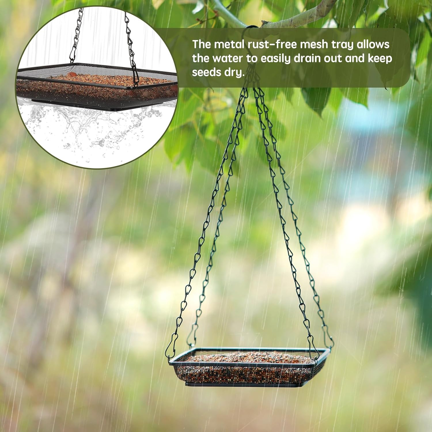 Hanging Bird Feeder Tray Metal Mesh Platform Seed Feeder with Durable Chains for