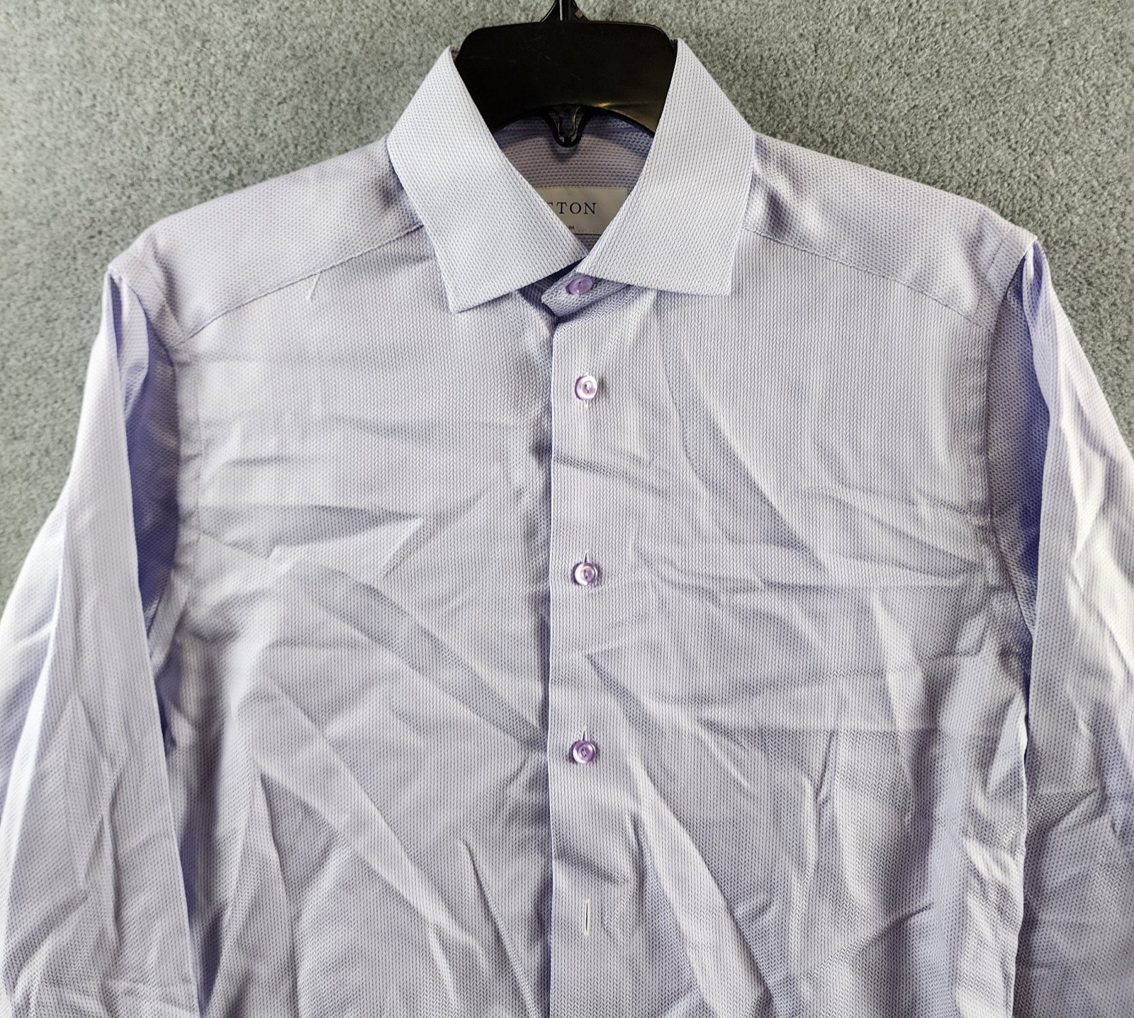 Eton High Performance Slim Fit Dress Shirt Men's 15/38 Light Pastel Blue Solid
