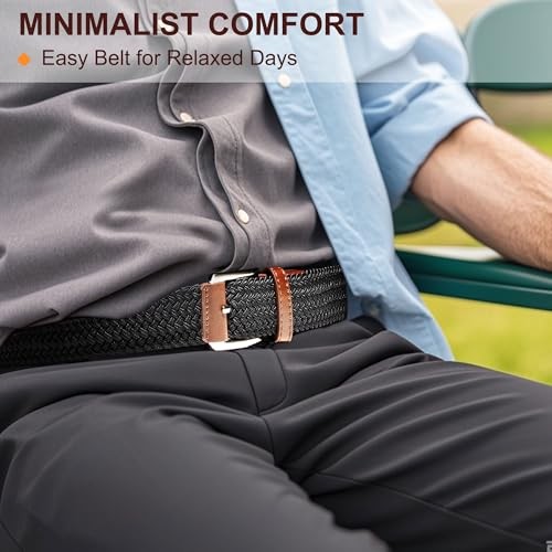 Golf Belts for Men, Mens Gifts Woven Braided 44 to 48 Waist Adjustable Black