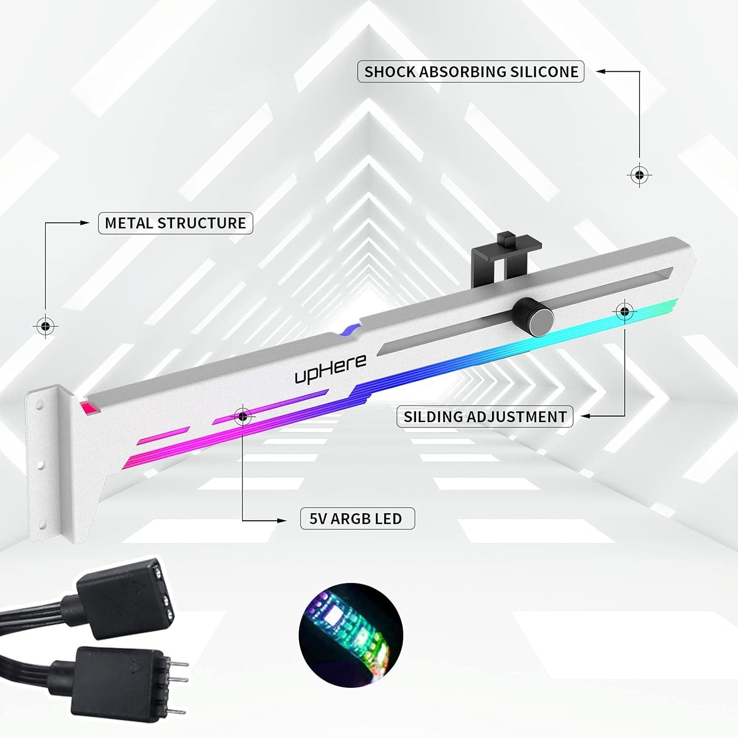 5V Addressable RGB White Graphics Card GPU Brace Support Video Card Sag Holde...