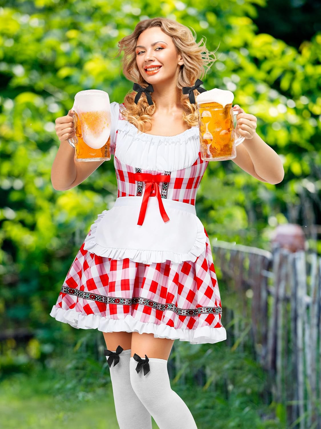 Women'S Oktoberfest Costume German Bavarian Costume Outfit Dirndl Dress Bow Hair