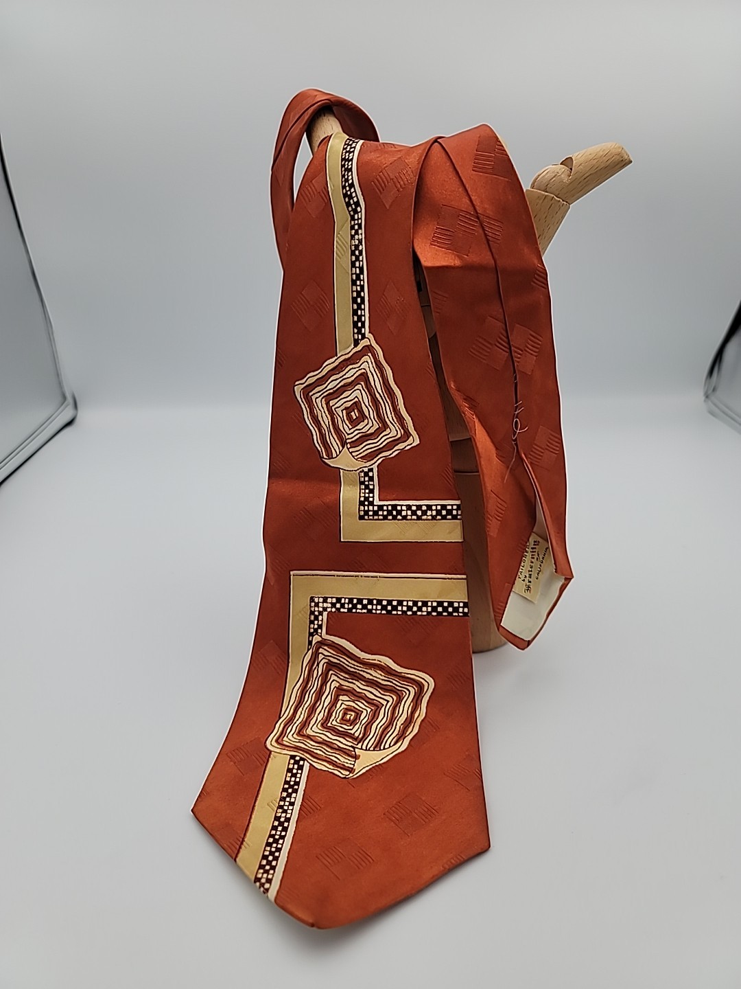 как выглядит Vtg 40s Mens Rockabilly Swing Necktie Orange Gold Brown By Fraternity фото
