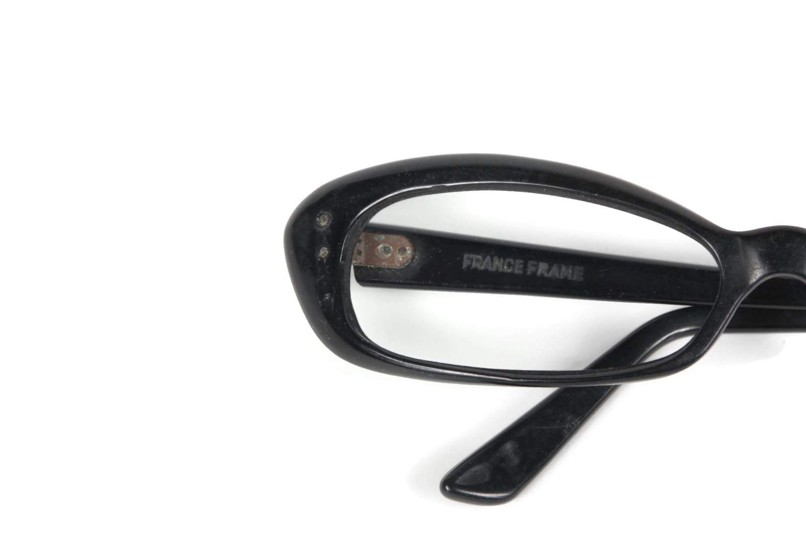 Vintage Eyeglasses Black Thick 1960s Wide Frames France
