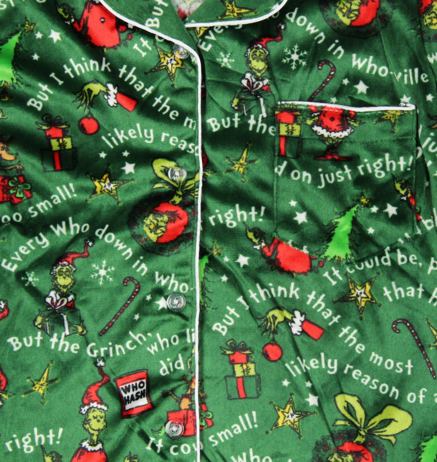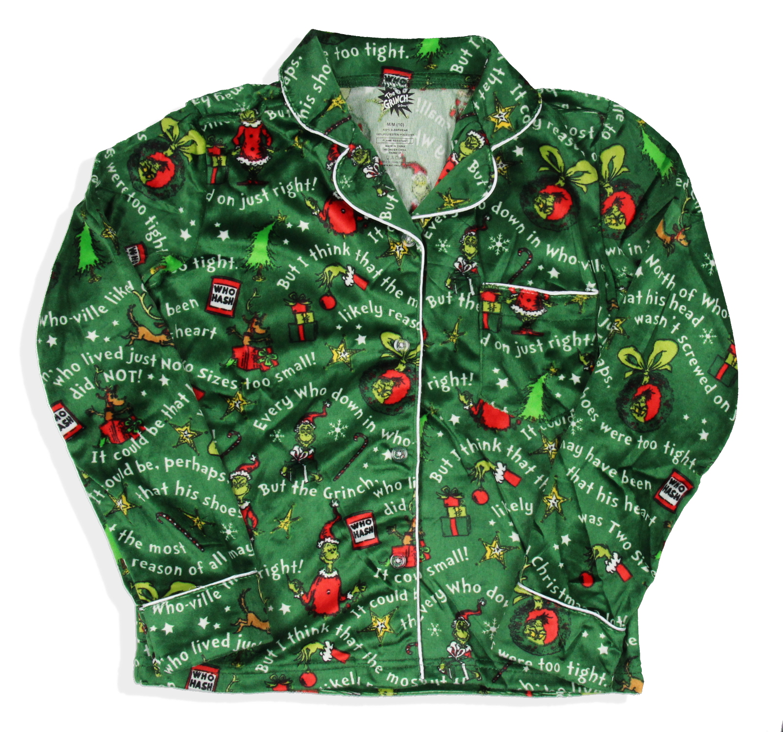 Dr. Seuss GRINCH Christmas Tossed Print Collar Sleep Pajama Set