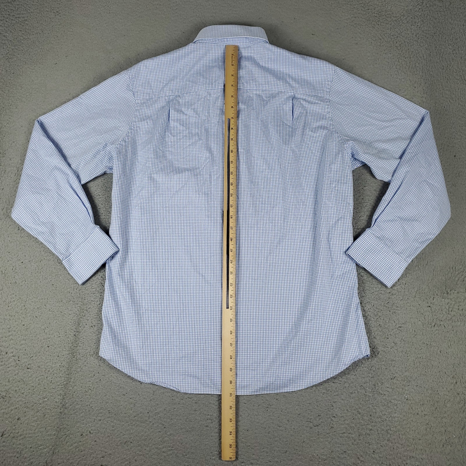 David Donahue Shirt Mens Size 17 Blue Plaid Dress Button Up Long Sleeve