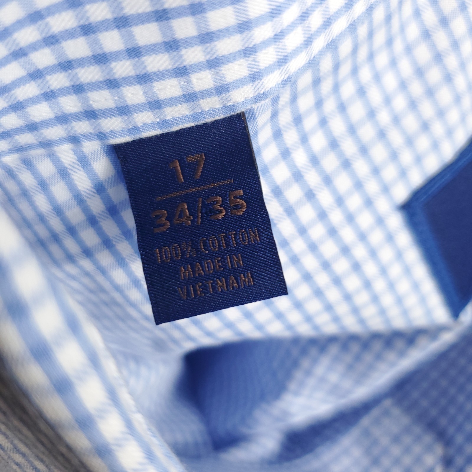как выглядит David Donahue Shirt Mens Size 17 Blue Plaid Dress Button Up Long Sleeve фото