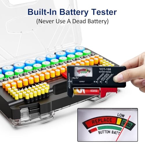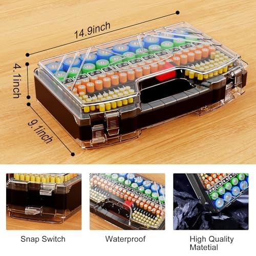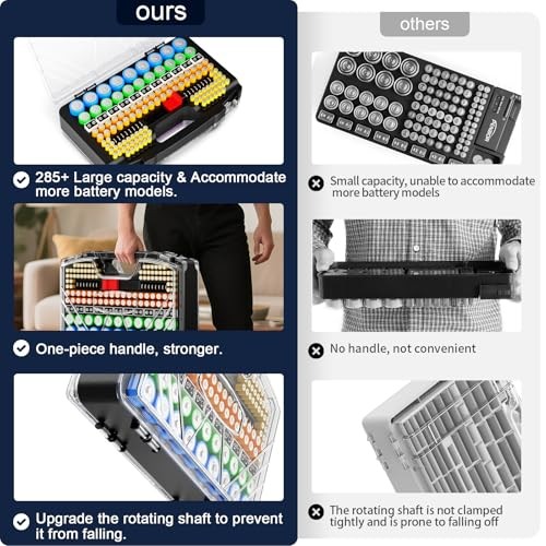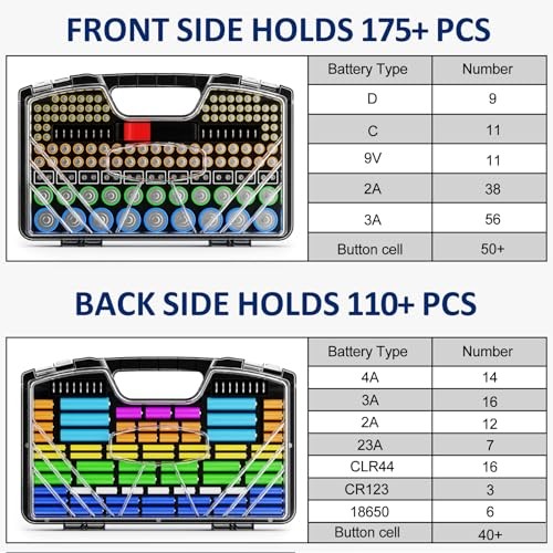 Battery Organizer Storage Holder Box Case with Tester - 285 Batteries BLACK