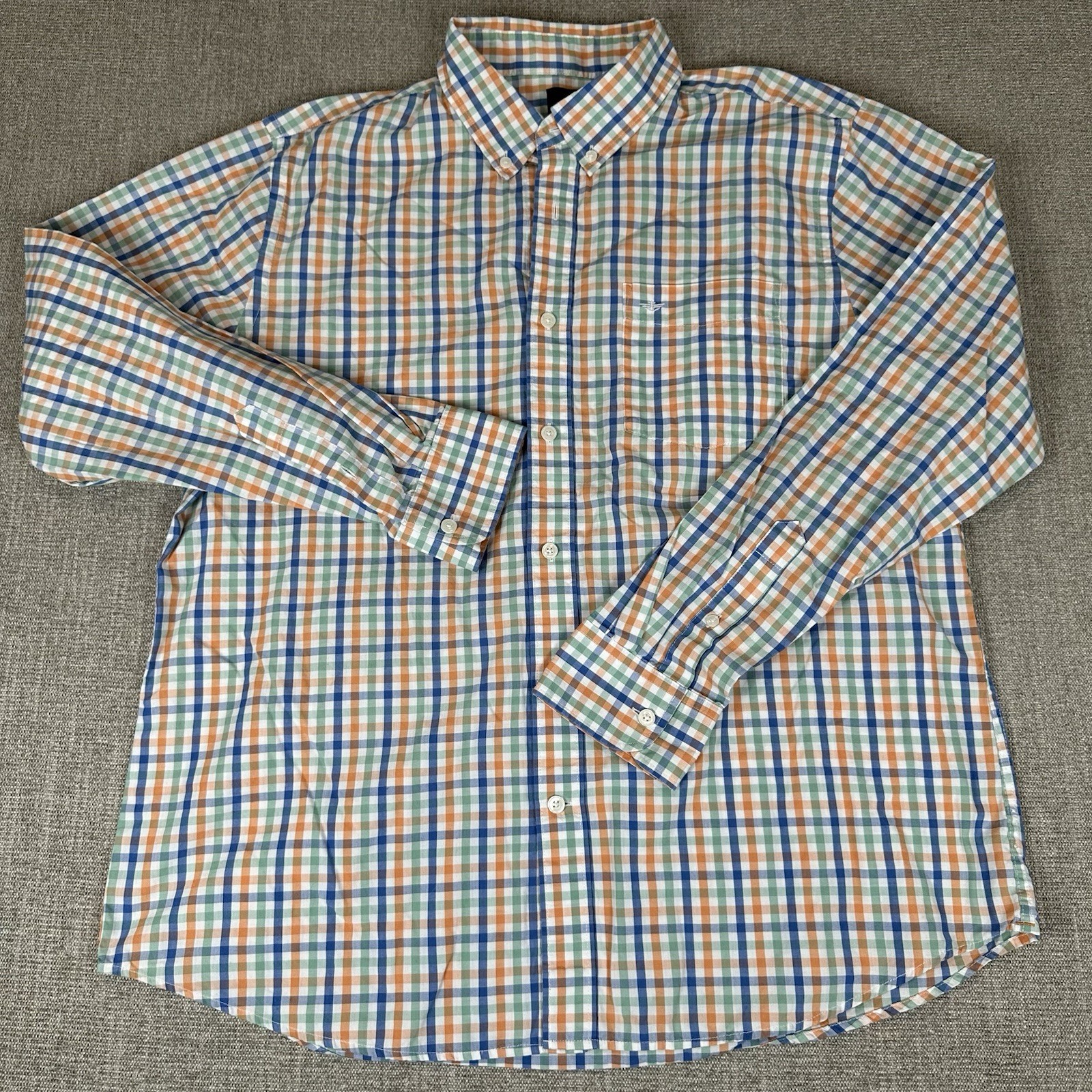 как выглядит Mens Dockers L Large Blue Orange Plaid Check Button Up Long Sleeve фото