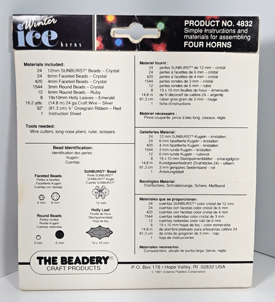 Vtg Beadery WINTER ICE HORNS French Horn Beads Beaded Christmas Ornament Kit NEW