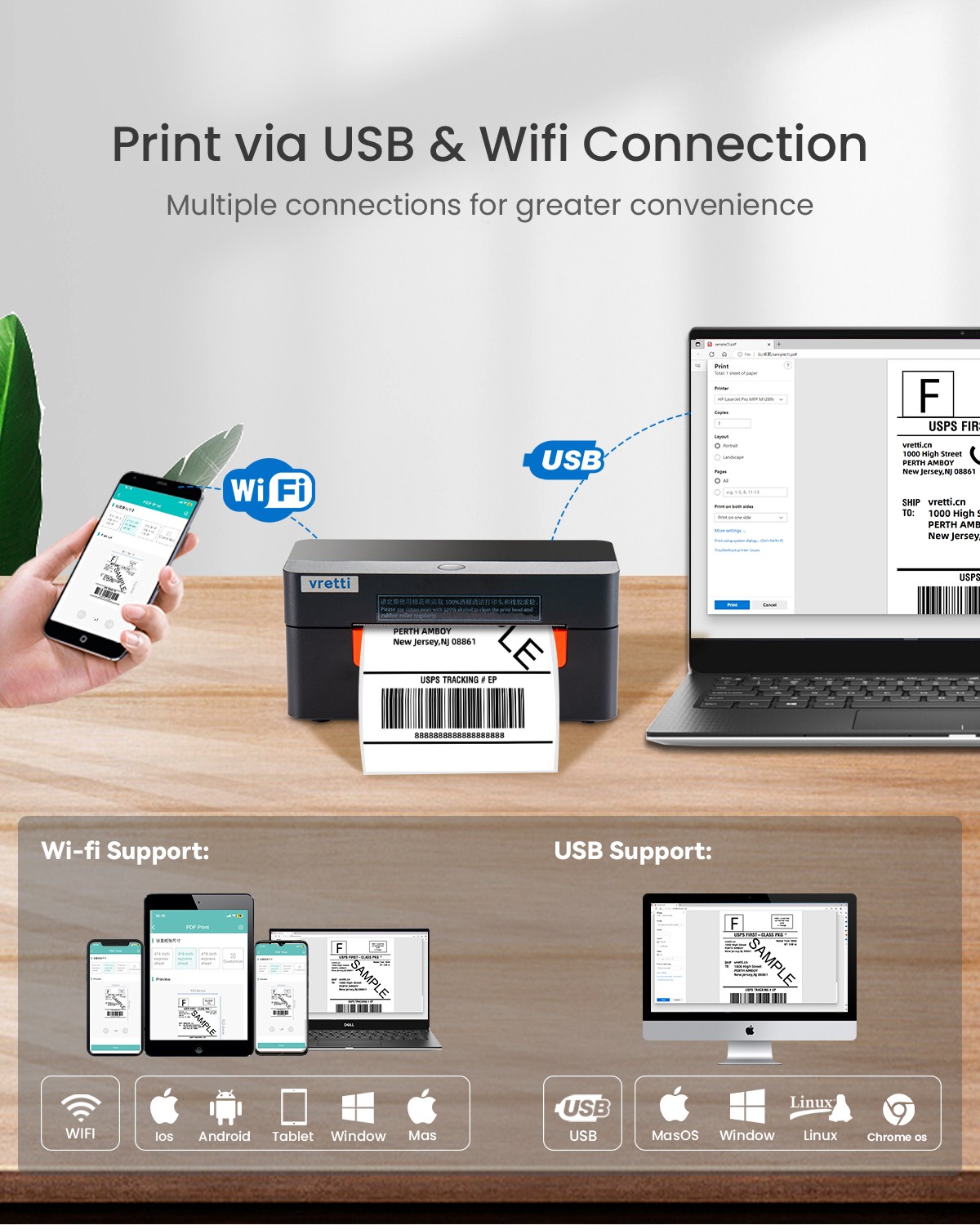 VRETTI Wifi Thermal Shipping Label Printer 4x6 EBAY MERCARI POSHMARK Black