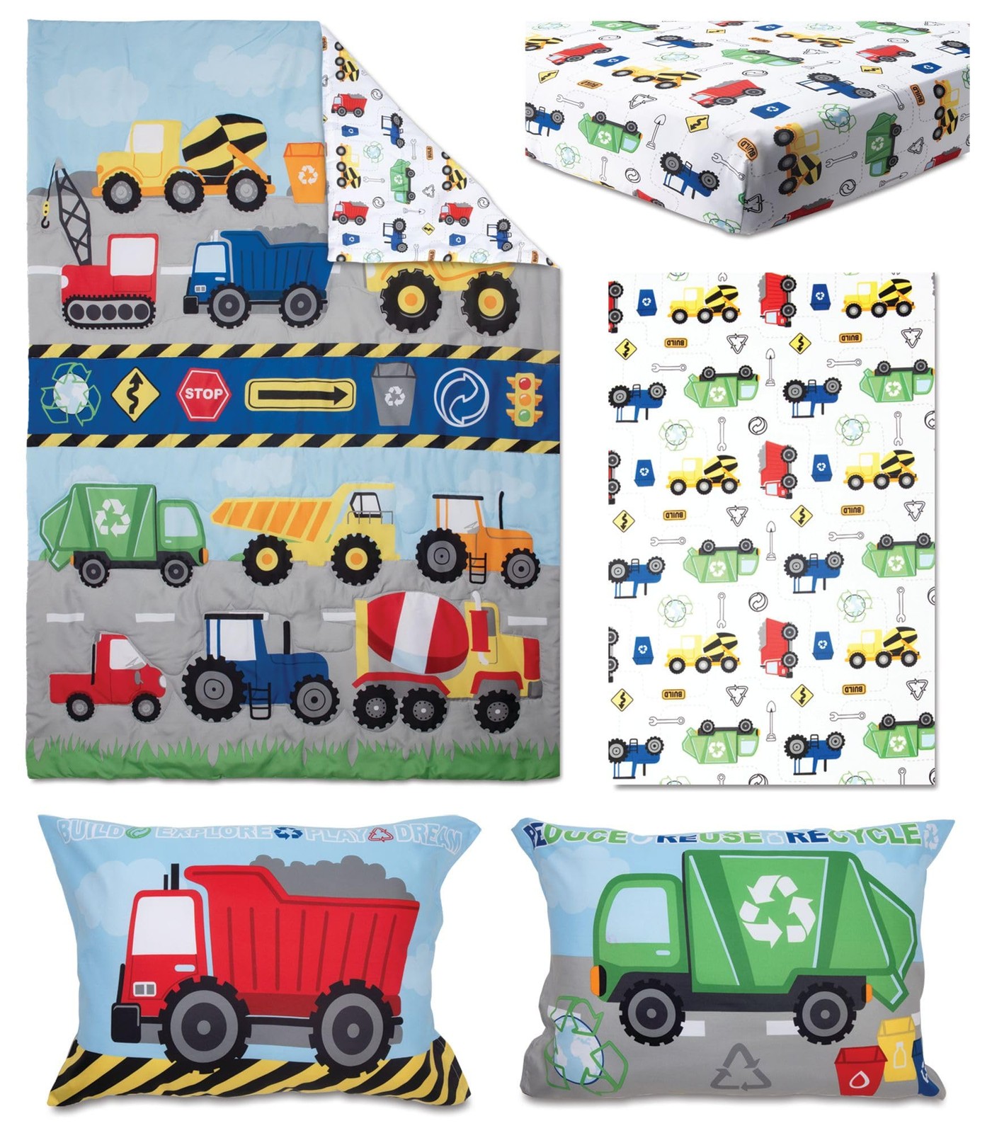 Funhouse Construction Area 4 Piece Bedding Set, Trucks Includes Comforter, ...