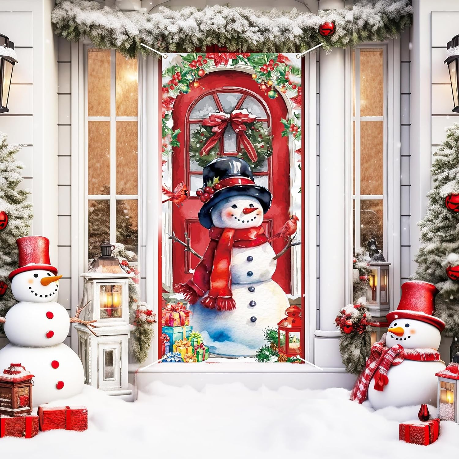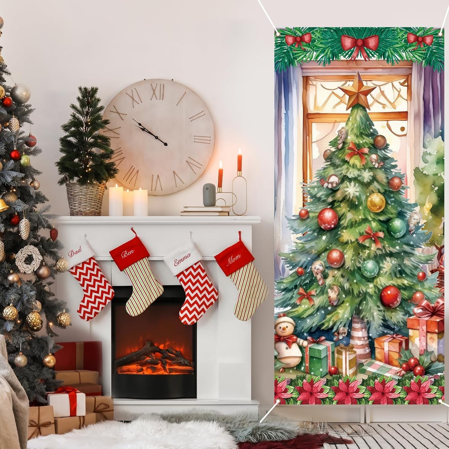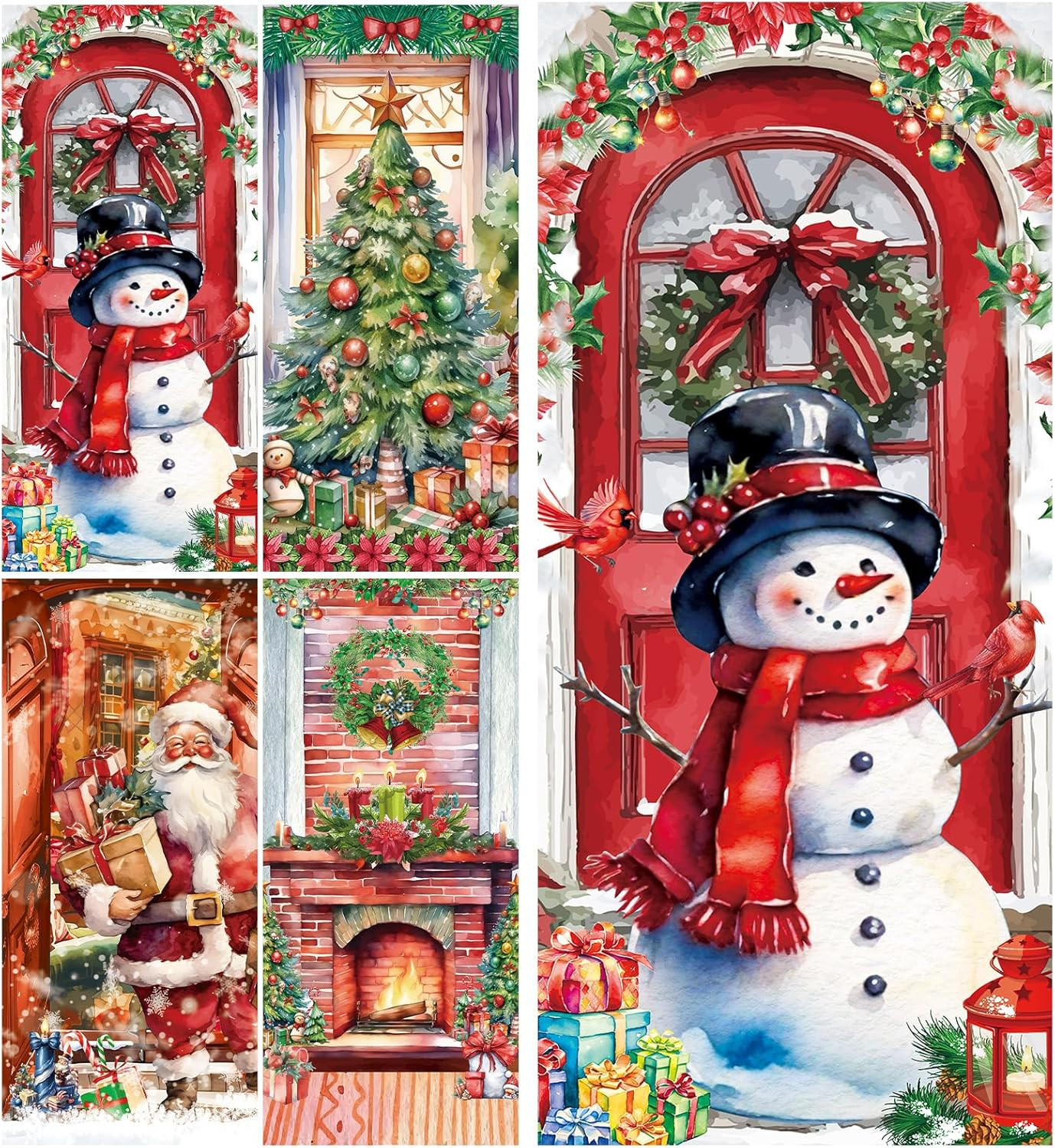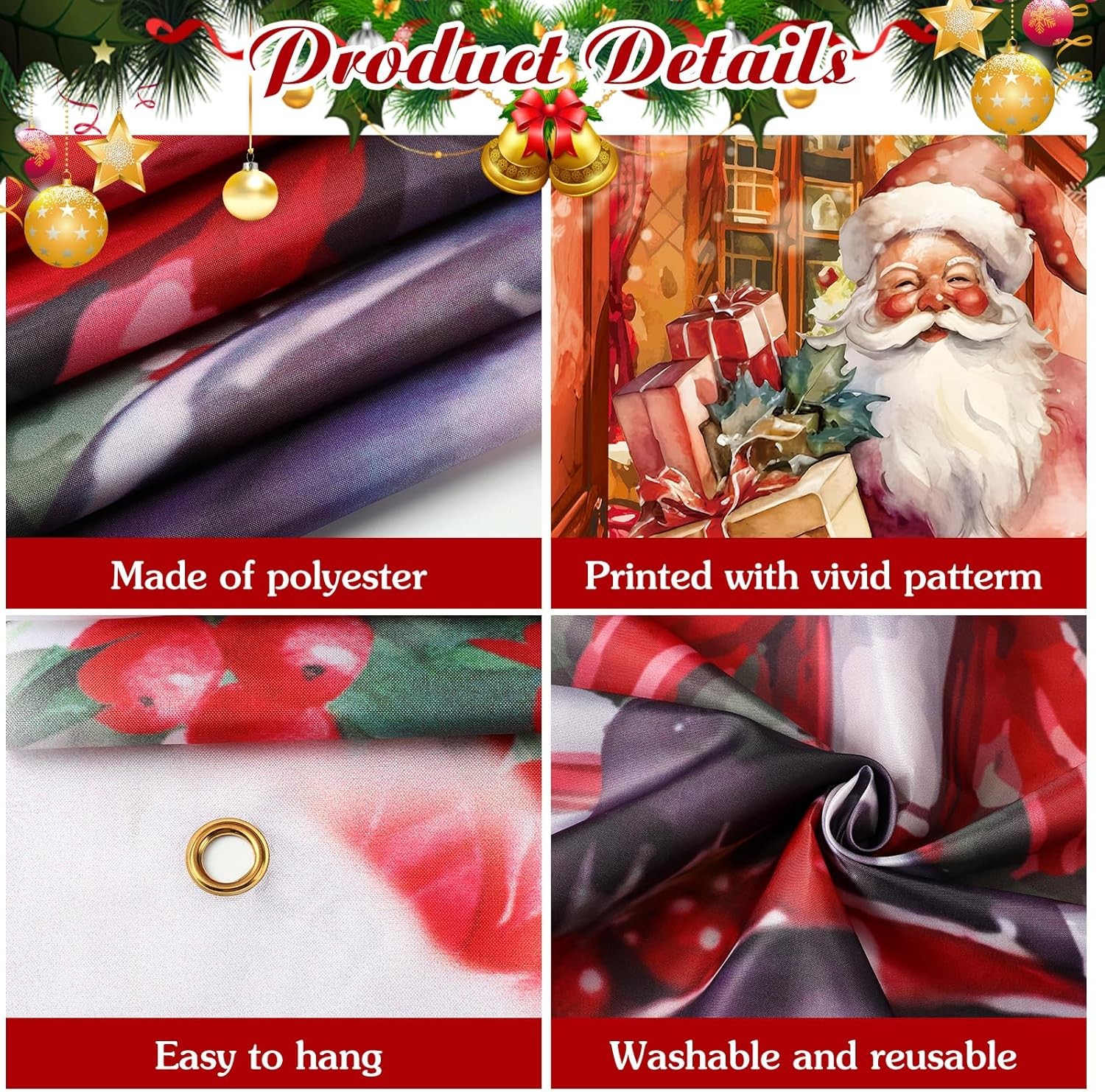 4 Pcs Merry Christmas Door Cover 78.7 X 35.4 Inch Xmas Tree Santa Snowman Firepl