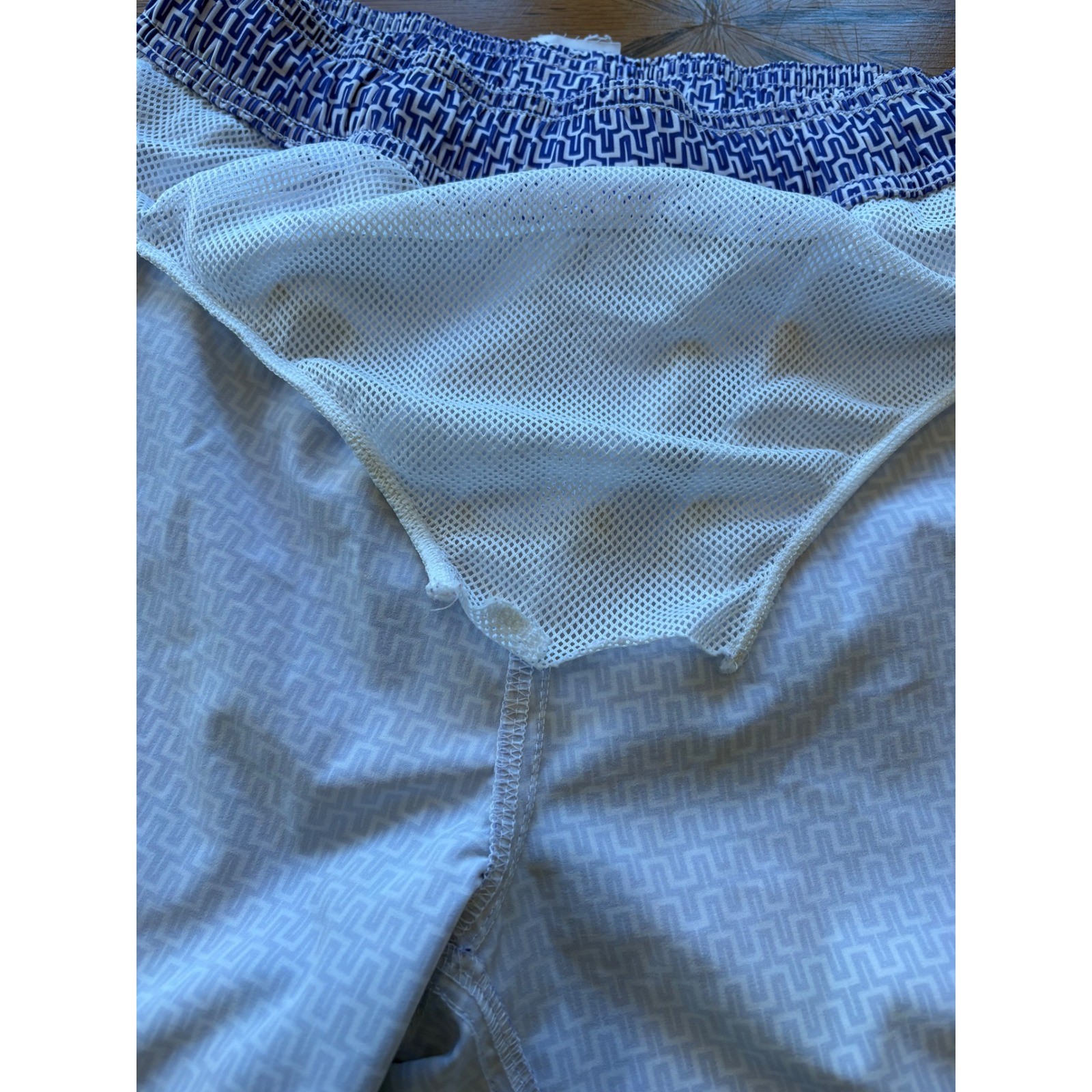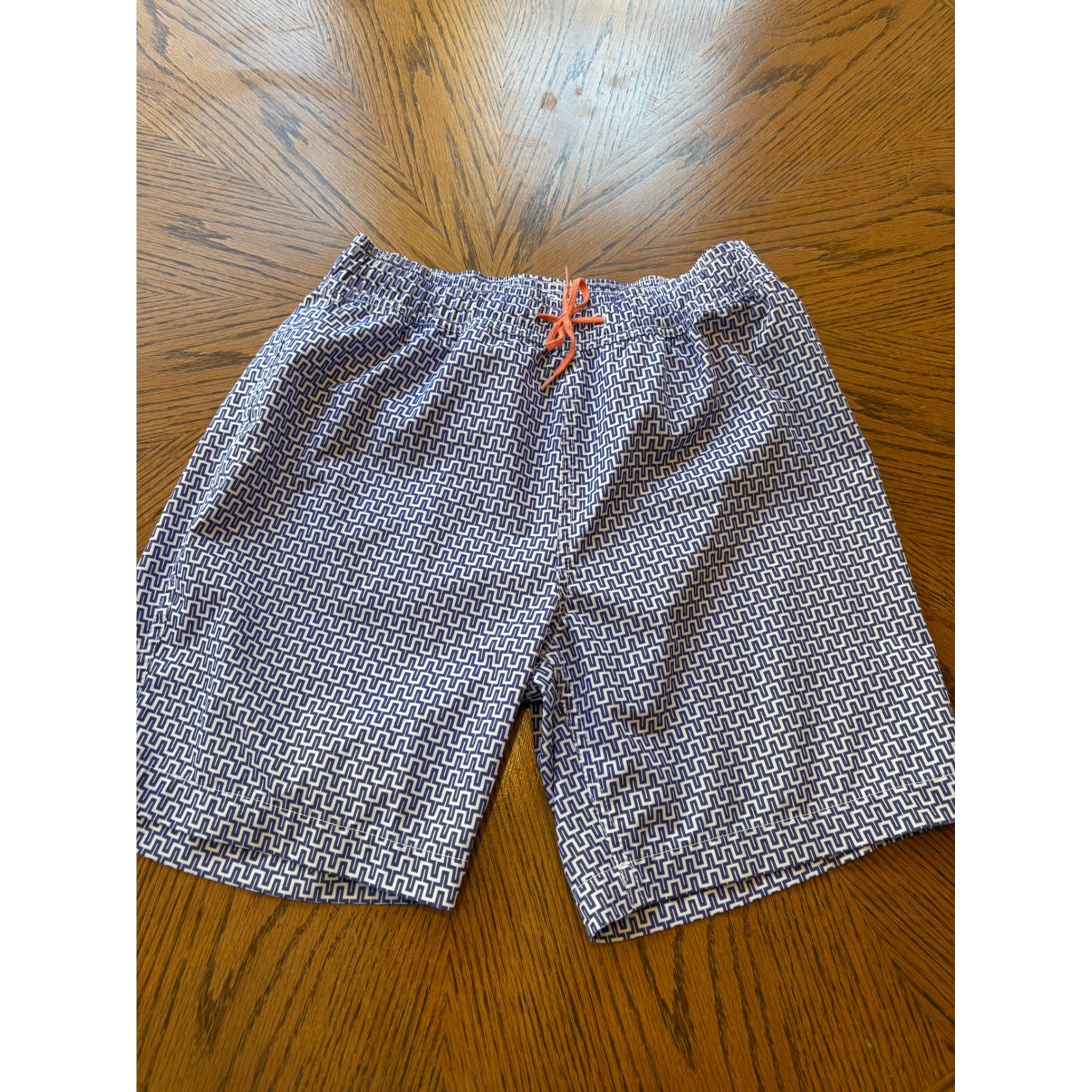 Crewcuts Boys Geometric Swim Trunks Size 14 Blue White Orange Drawstring