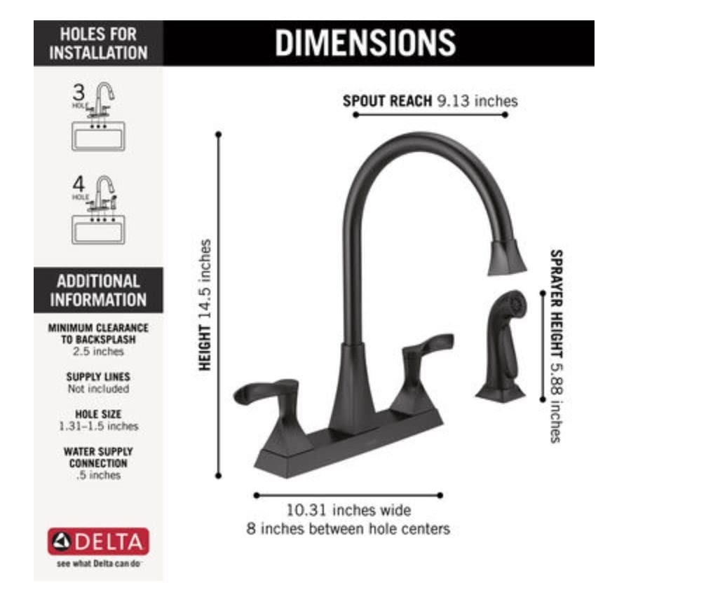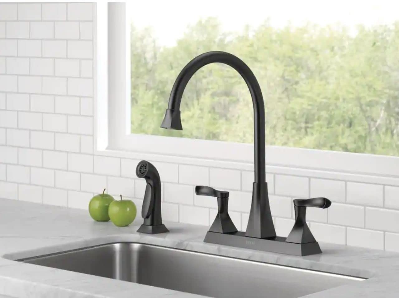 Delta 21741LF-BL Everly Double Handle Standard Kitchen Faucet with Spray in