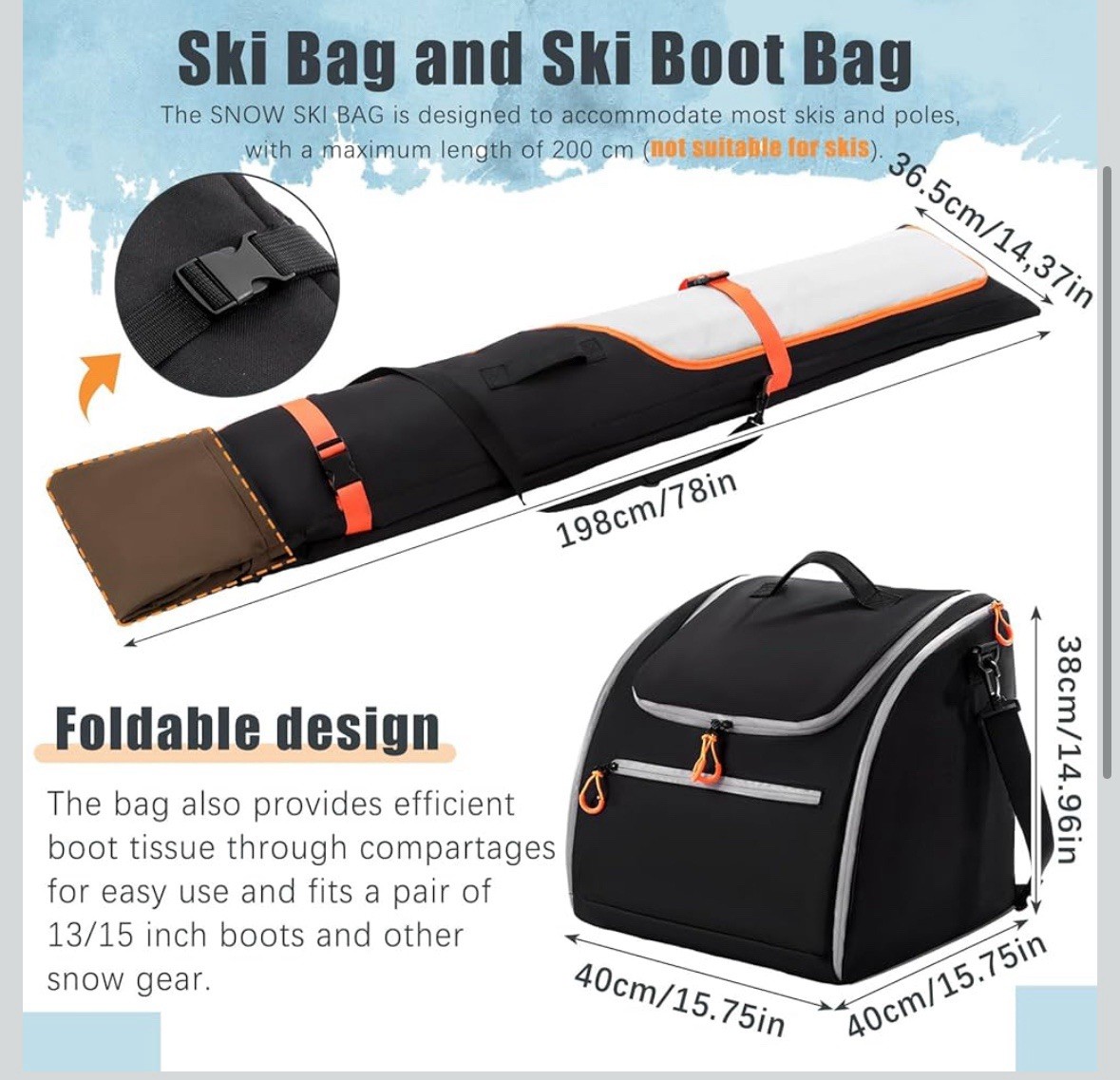 Heavy Duty Ski Bag and Boot Bag Combo Bag Fits Up To Size 13 Boots.