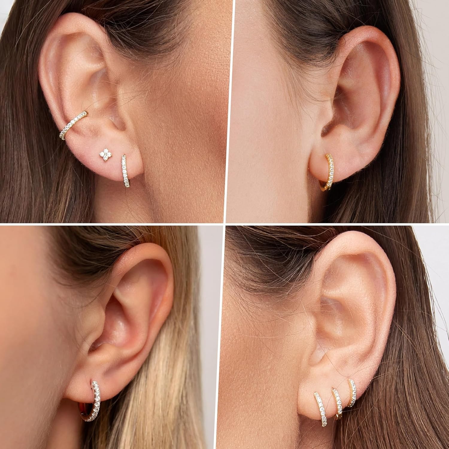 Christmas Small Hoop Earrings for Women, Diamond Stud Gold-White