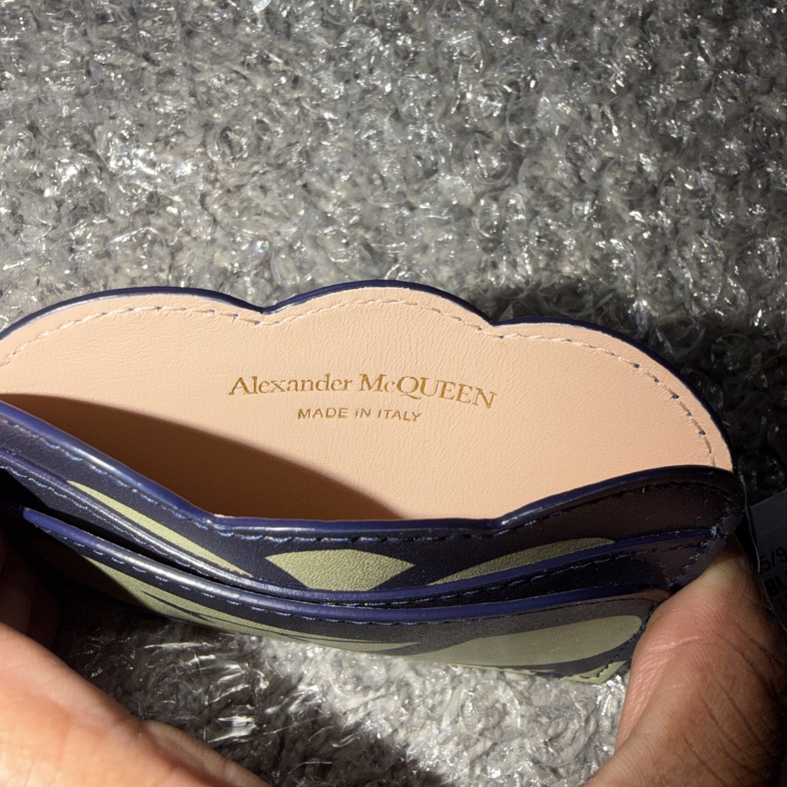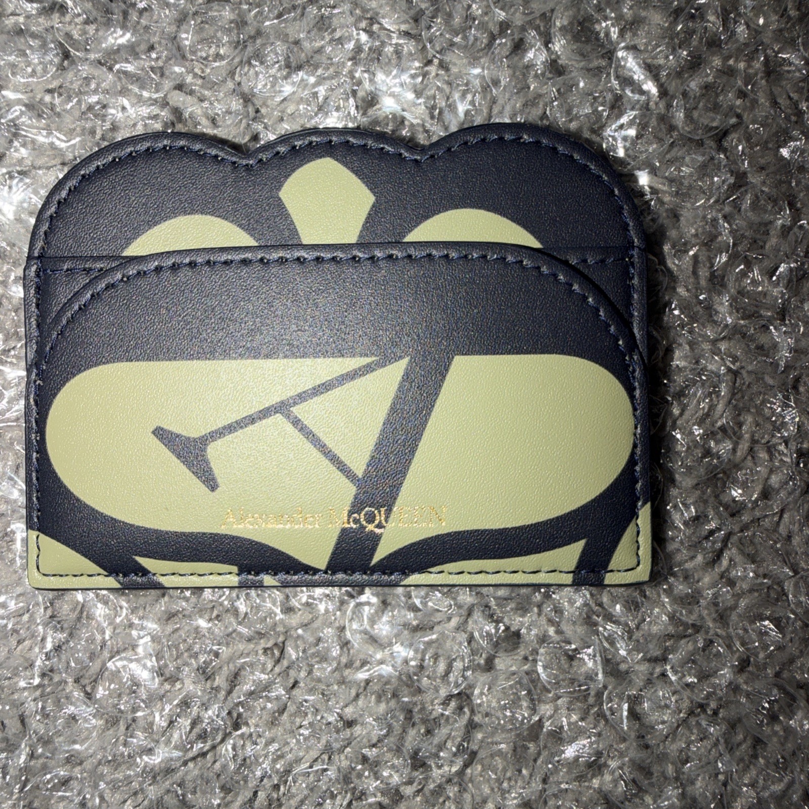 как выглядит Alexander McQueen Card Holder Leather Sage/ Navy NWT фото