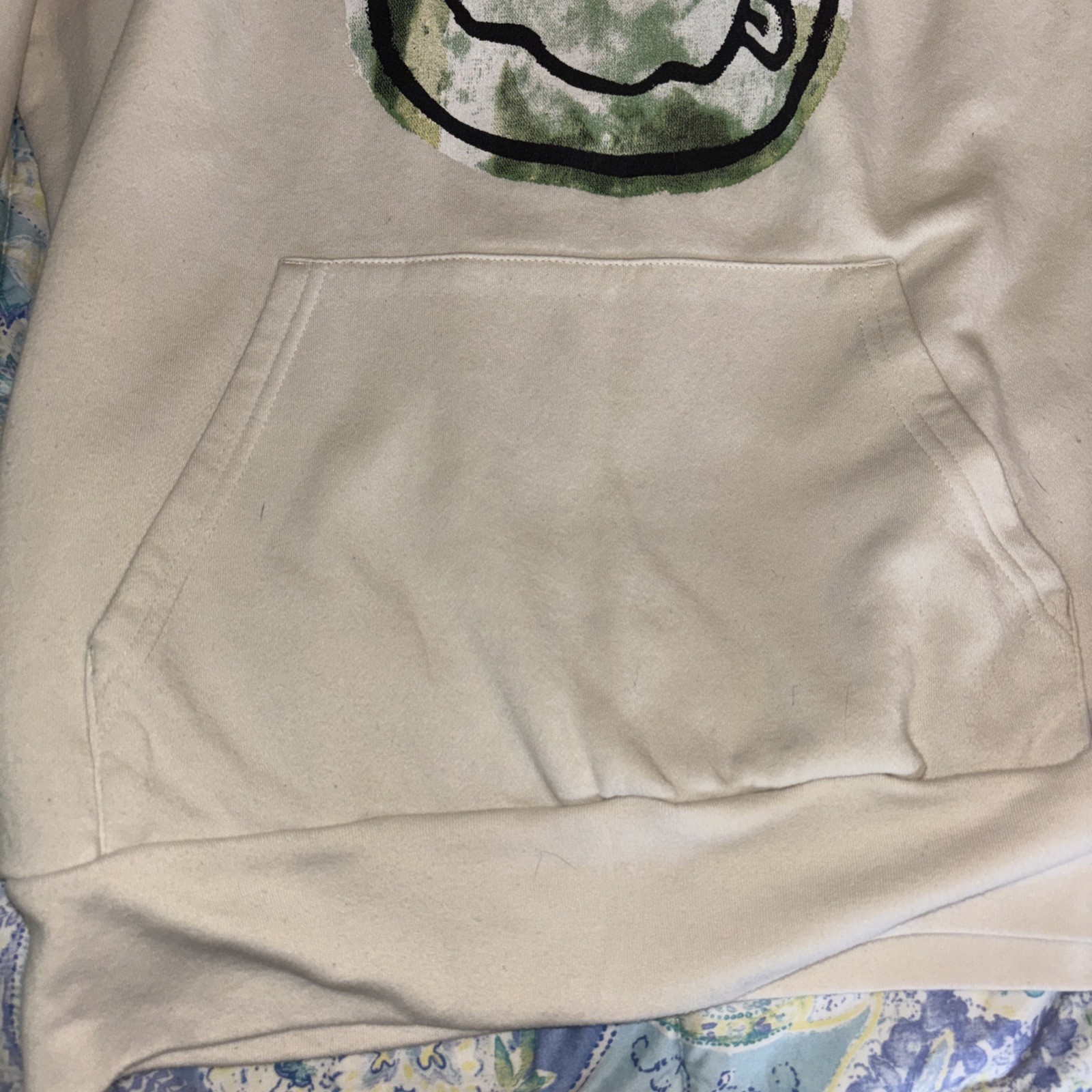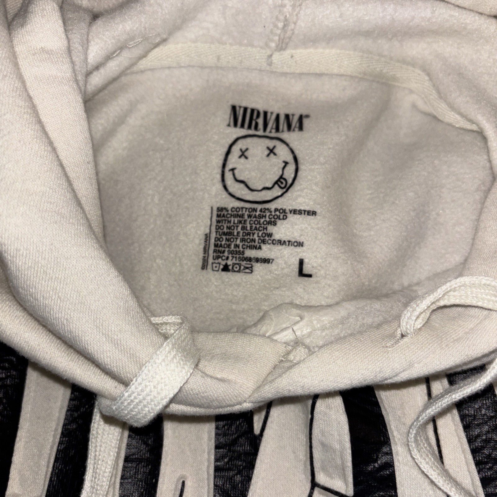 как выглядит Nirvana Hoodie Mens L Beige , Smiley Face , Small Stains Unfortunately As/is фото