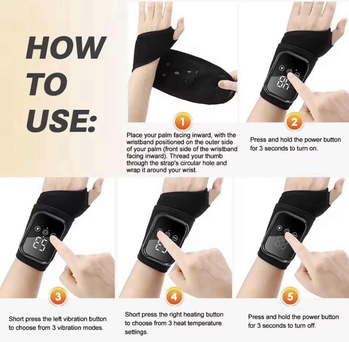 Electric Hand Wrist Massager Brace Pain Relief Vibration Hot Compress Therapy US