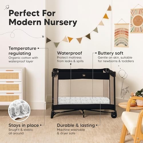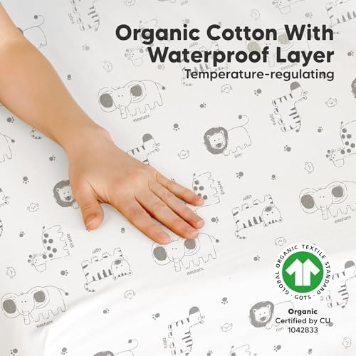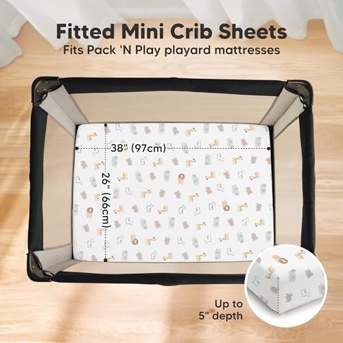 2 Pack Waterproof Mini Crib Sheets, Fitted Organic Cotton Playard Sheets 38x26