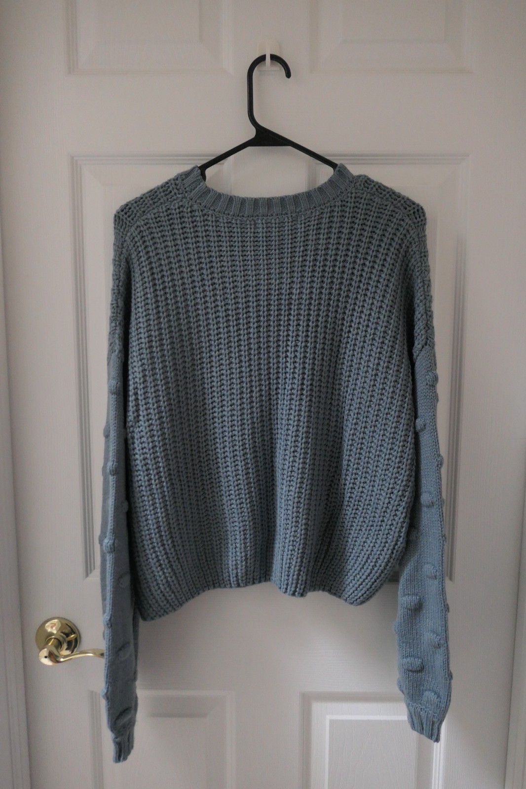 Moon Madison Blue Knit Sweater W/ Polka Dot Sleeves Gently Worn Size: M