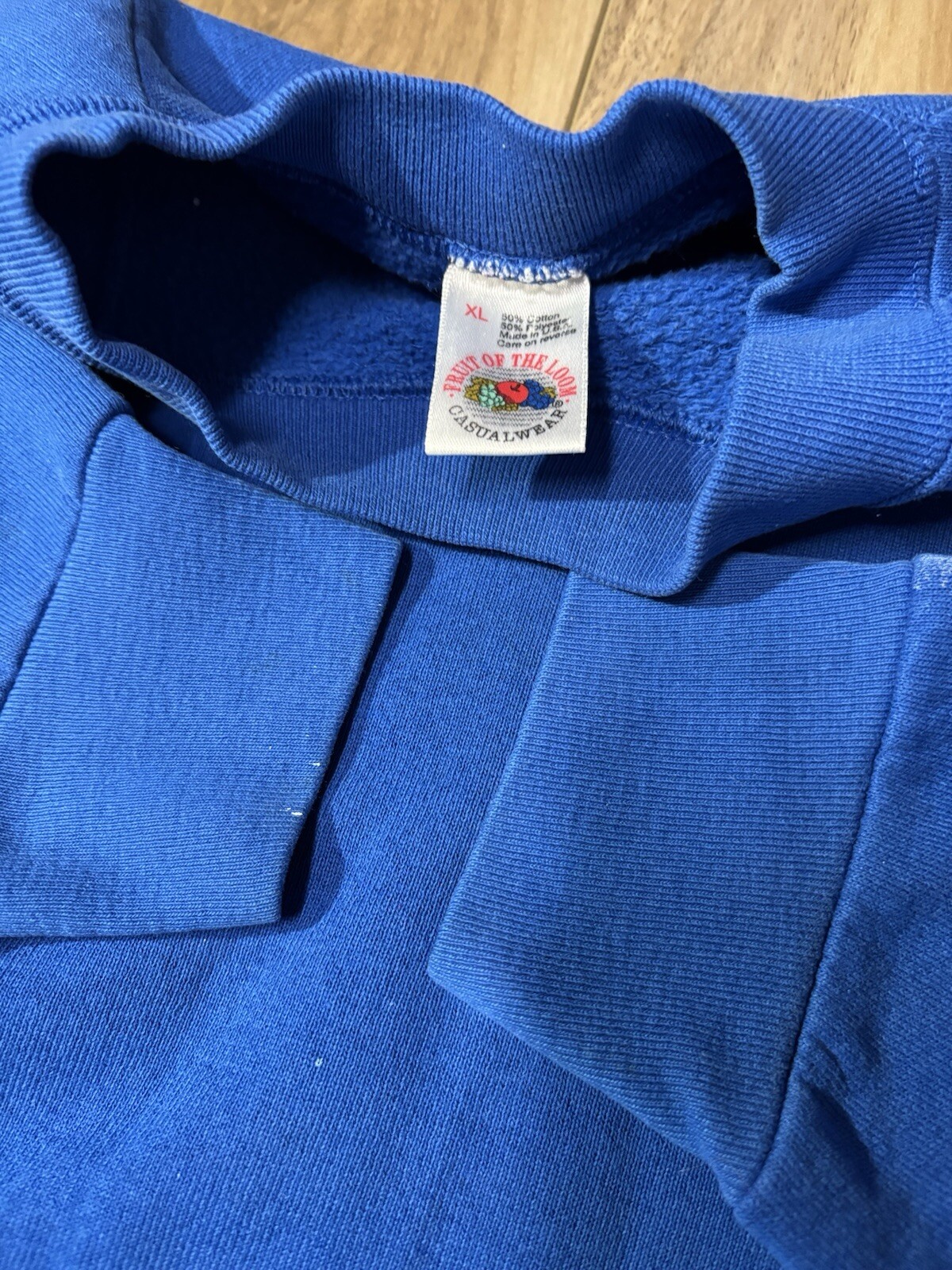 как выглядит VTG 80s 90s M Fruit of the Loom Blank Blue Raglan Crewneck Sweatshirt USA 50/50 фото