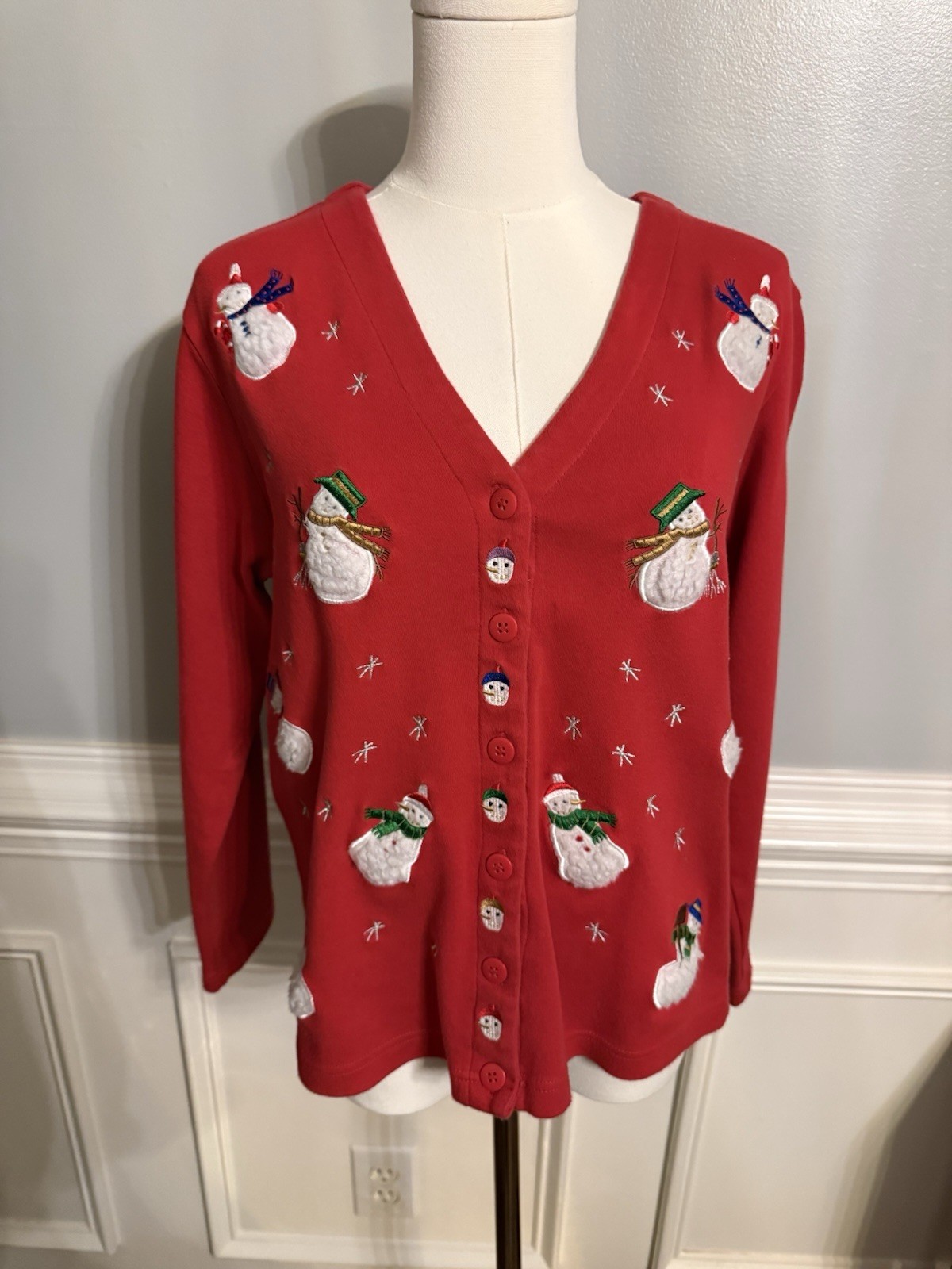 Vintage BC Snowman Embroidered Christmas Cardigan Sweater, Medium ,Holiday