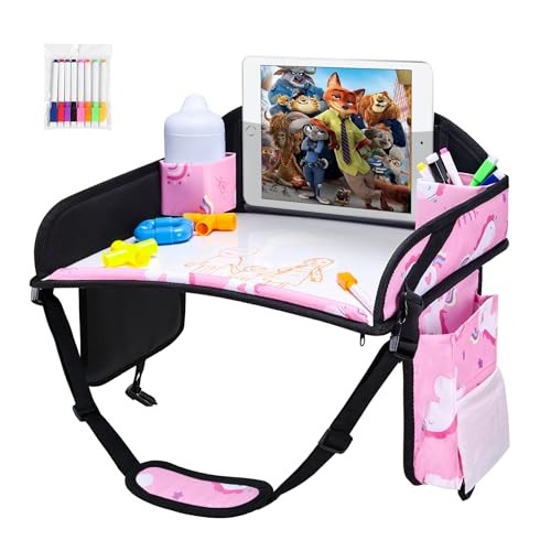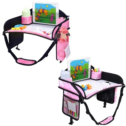 2PCS Kids Travel Tray, Car Seat Tray for kids Travel, Toddler Road 2Pink-2PCS