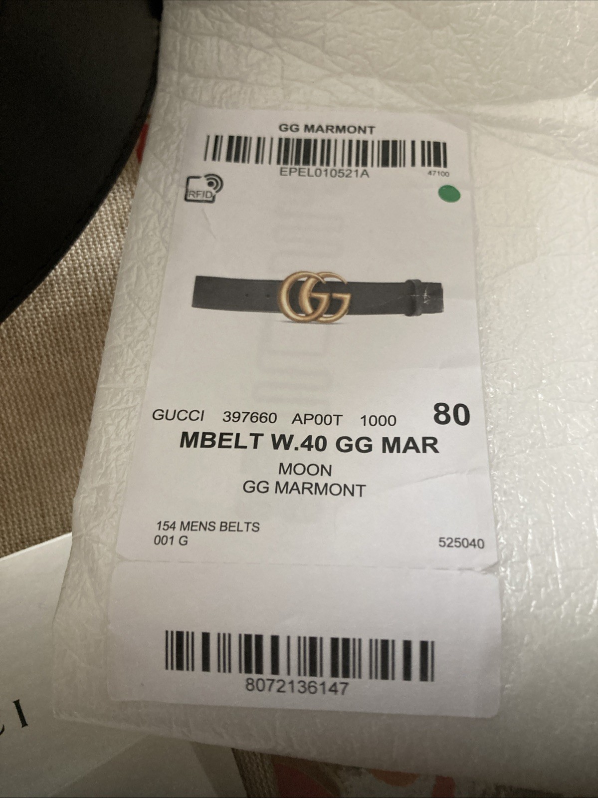 как выглядит Gucci Marmont Black Leather Wide Belt 80cm 1.5cm Gold GG Buckle Italy Authentic фото
