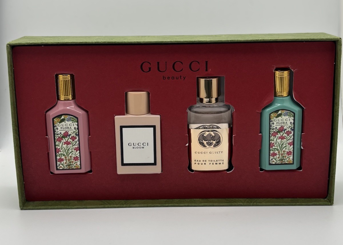как выглядит GUCCI BEAUTY 4PC MINIATURE PERFUMES SET With Damaged Box READ фото