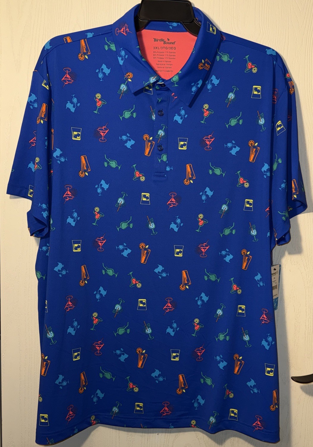 NWT Mens Birdie Bound Blue Cocktail Drink Golf Polo Shirt Size 3XL