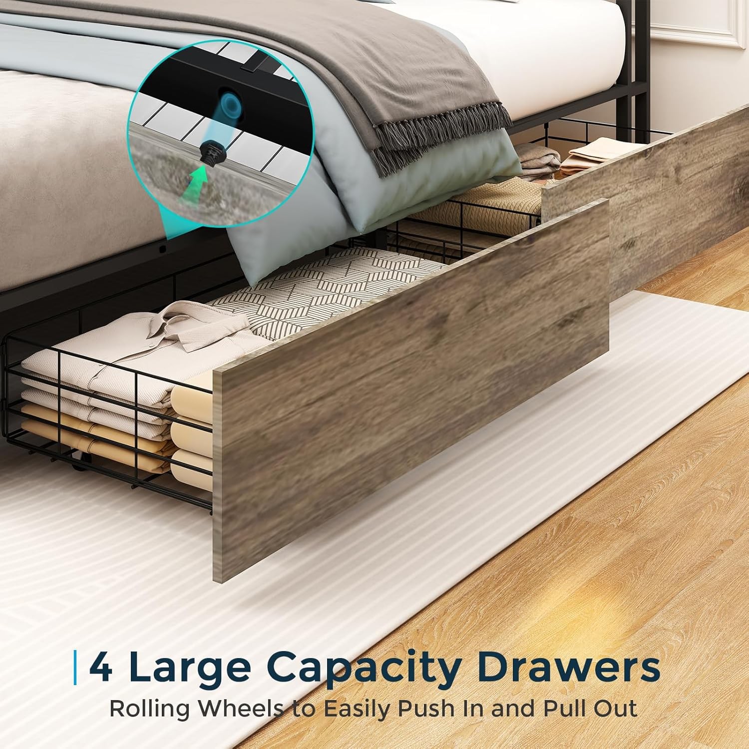 Особенности: LED Light, 4 Storage Drawer, No Box Spring Needed, queak Resistant, Remote Control RGB LED Lights