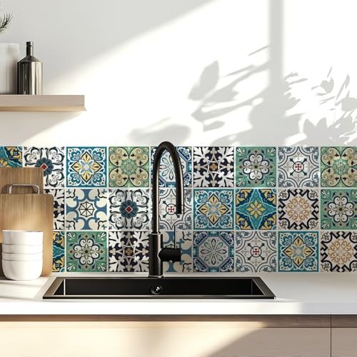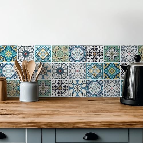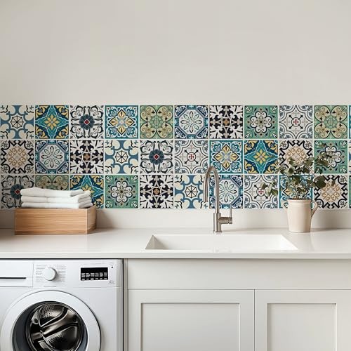 30pcs Bohemian Style Vinyl Tile Decals, 4x4inch Self-Adhesive Peel and Stick